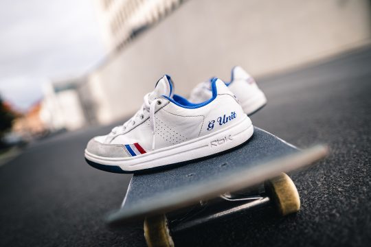 Uns hat vor allem der weiße Colorway so richtig aus den Socken gehauen, denn die Inspiration dafür fand Bronze 56k beim legendären G-Unit G6, der 2002/2003 seinen ersten Release feiert! Der Schuh wurde mit einem hochwertigen Leder-Upper sowie einer Zehenkappe aus Suede versehen. Das blaue Frotteefutter, die blaue Laufsohle und das Detail an der Ecke in Rot, Weiß und Blau geben den Look der ’00er perfekt wider!
