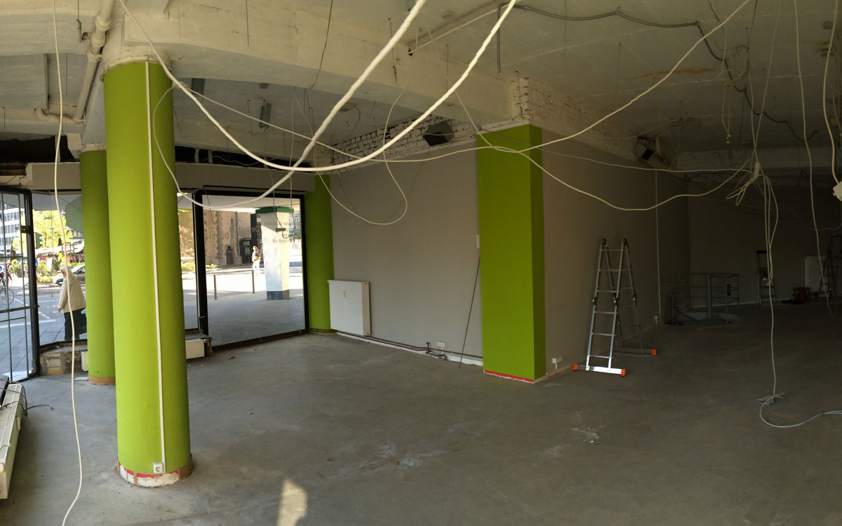 Die architektonische Aussage der bestehenden Verkaufs- und Arbeitsflächen spiegelt durch die großen Glasflächen, hohen Decken sowie starken Säulen der Wände wider, dass bei unserer Philosophie ehrliche, ungeschönt ablesbare Eigenschaften sowohl räumlich, als auch zwischenmenschlich höchste Priorität besitzen.