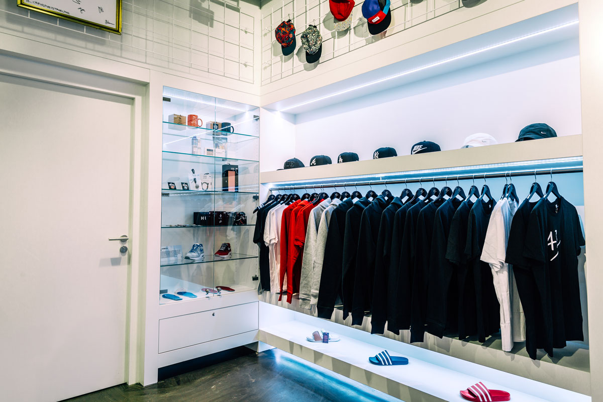 »Natürlich ist das Konzept des neuen Stores angelehnt an das bereits gegebene und vertraute Interieur unserers Mutterschiffes in Fulda. Jedoch bescherte die neue Umgebung und Behausung eine unglaubliche Vielfalt an Inspiration und Expression. Das denkmalgeschützte und kriminal-historisch wertvolle Nitribit-Haus stellte nicht nur die ehrenvolle Aufgabe, etwas ganz Besonderes zu zaubern, sondern hier sollte auch die Tatsache hohen Einfluss nehmen, an einer unglaublich hoch frequentierten Ecke Frankfurts widerzuspiegeln, warum unser einst kleiner Name nun für etwas sehr Großes steht.