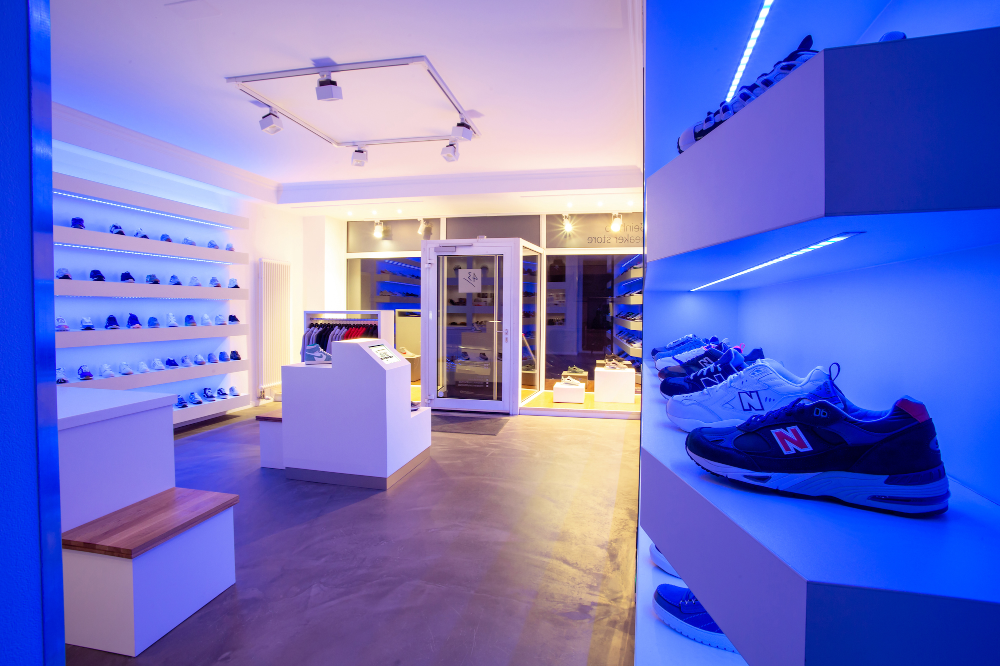 Ende 2018 hat sich unser geliebter Shop in Fulda dann erneut einer Schönheitskorrektur unterzogen – neuer Boden, neue Sitzgelegenheiten, strahlend weiße Wände und auch der Fernseher sowie das iPad wurden »upgedatet«. Brandneu ist unser zweiter »Counter«, die SMC-Scanstehle. An dieser Stehle könnt ihr ab sofort selbstständig checken, welche Größen der jeweiligen Schuhe instore noch verfügbar sind. Dazu nehmt ihr einfach einen Sneaker aus dem Regal (unter all unseren Turnschuhen findet ihr einen QR-Code), stellt ihn auf die Glasfläche und dann werden euch auf dem Fernseher »On-Feet-Bilder« sowie die verfügbaren Größen angezeigt.