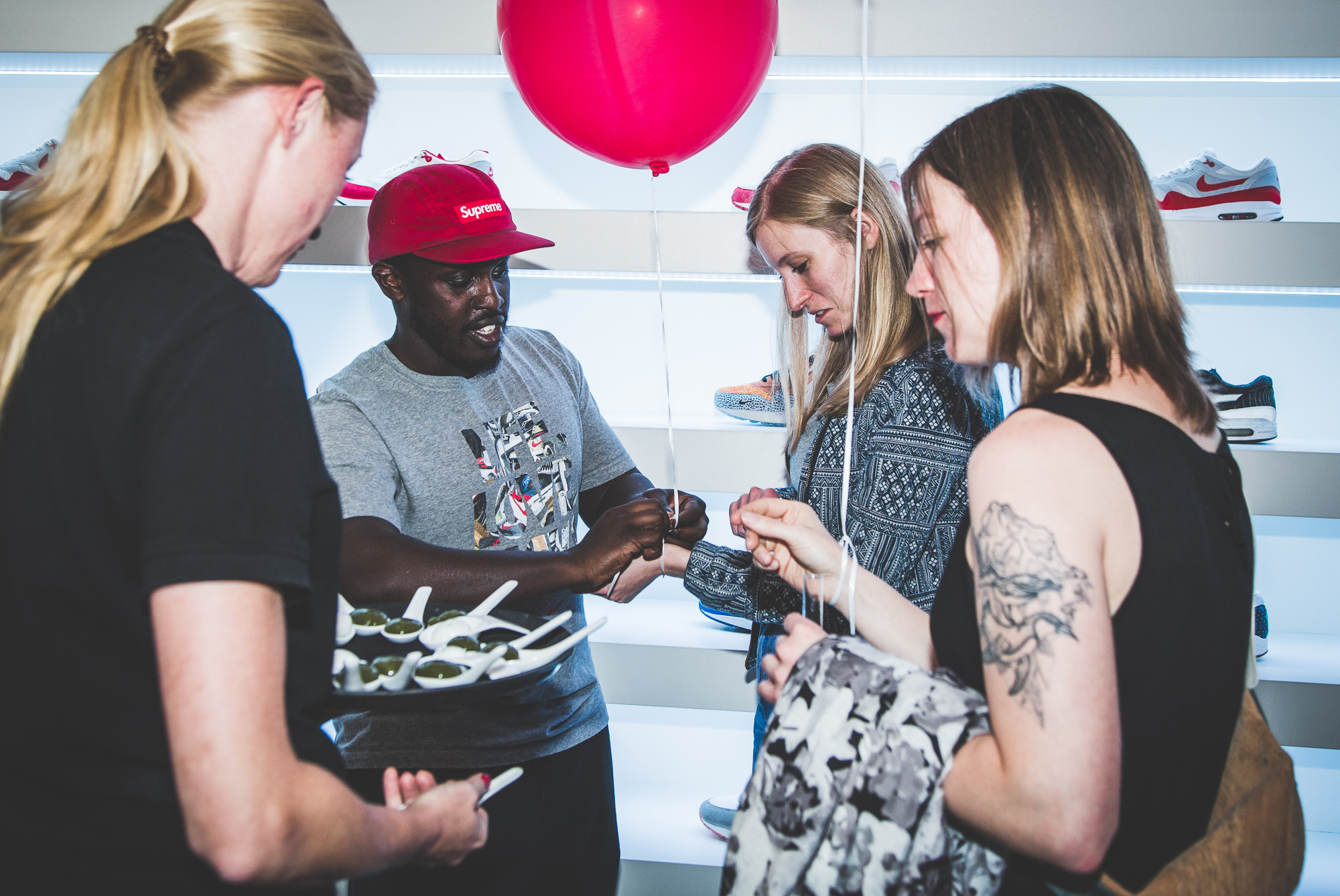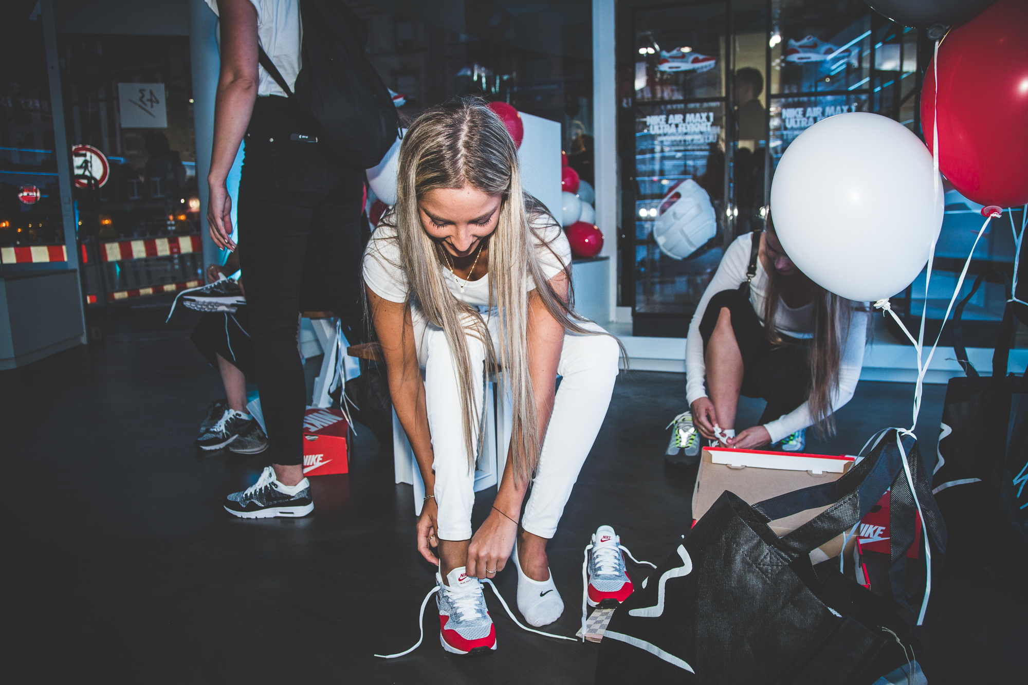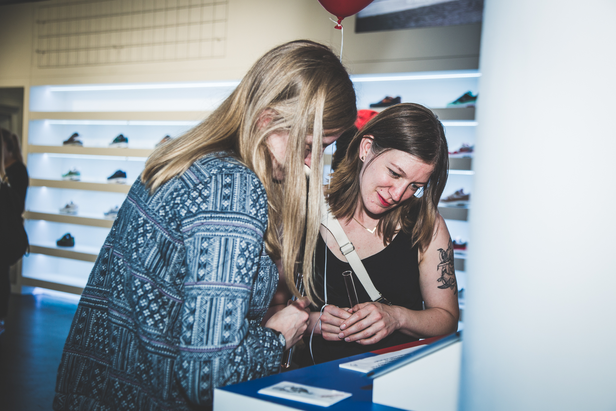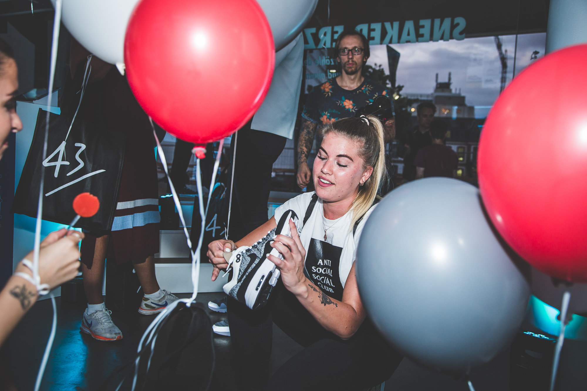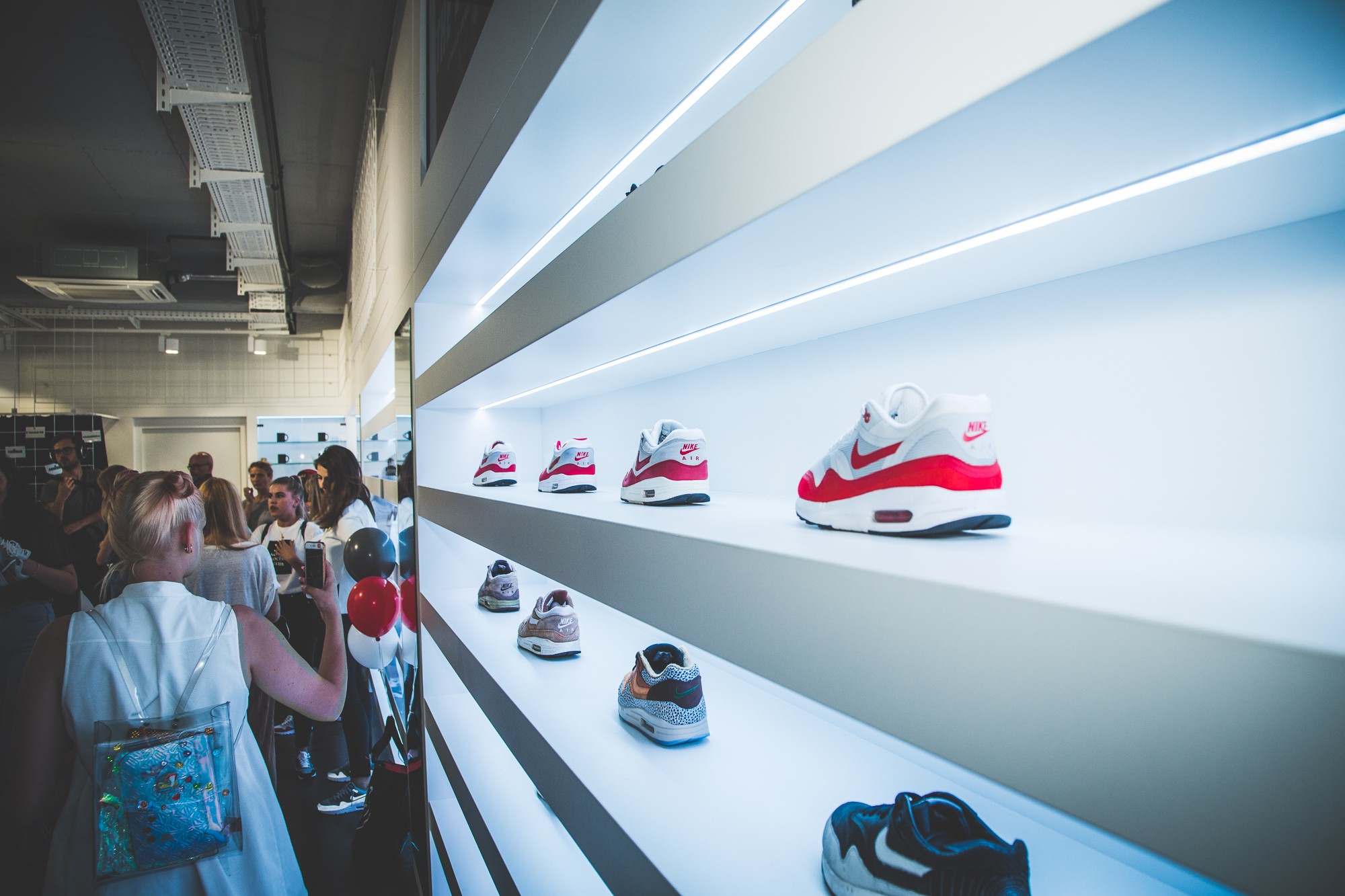 Im Anschluss an unser Pre-Opening mit Nike Sportswear letzten Donnerstag übernahmen die Damen unseren neuen Store in Frankfurt am Main und die Herren der Schöpfung wurden kurzerhand vor die Tür gesetzt. Denn bei der »Girls Night In« drehte sich alles um das Wohl der weiblichen Sneakerheads aus der Bankenmetropole. Neben dem extrem leichten WMNS Air Max 1 Ultra Flyknit warteten erfrischende Drinks, leckere Molekularküche, ein Bällebad für Sneaker Selfies und eine Customization-Station auf die Gäste, die von niemand Geringeres als Eda Vendetta durch den Abend geführt wurden. Der AM1 Ultra Flyknit, das neue Leichtgewicht von Nike, wurde von den Damen auf Herz und Nieren geprüft und konnte zusätzlich in allen erdenklichen Farben mit individuellen Schriftzügen bestickt werden.