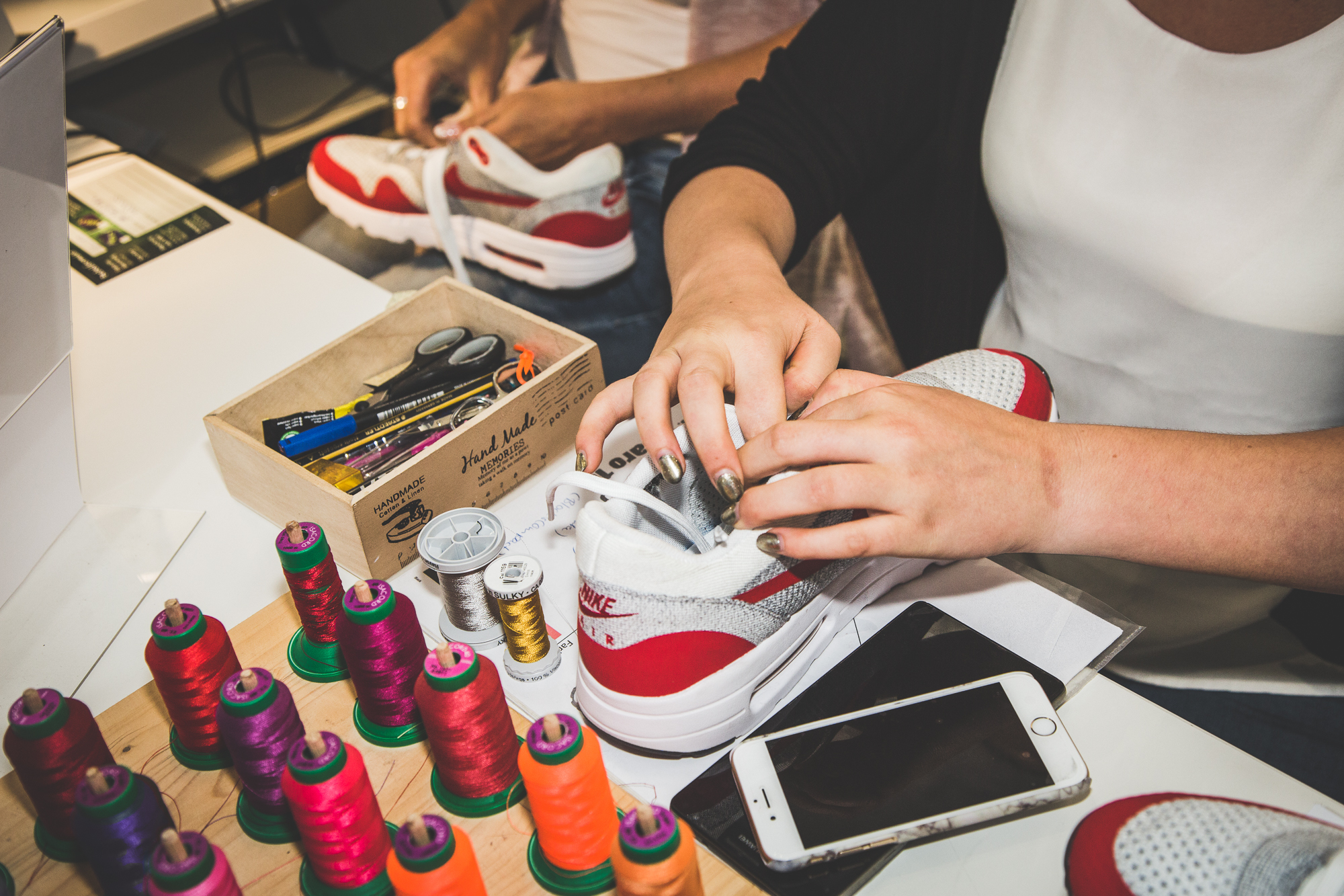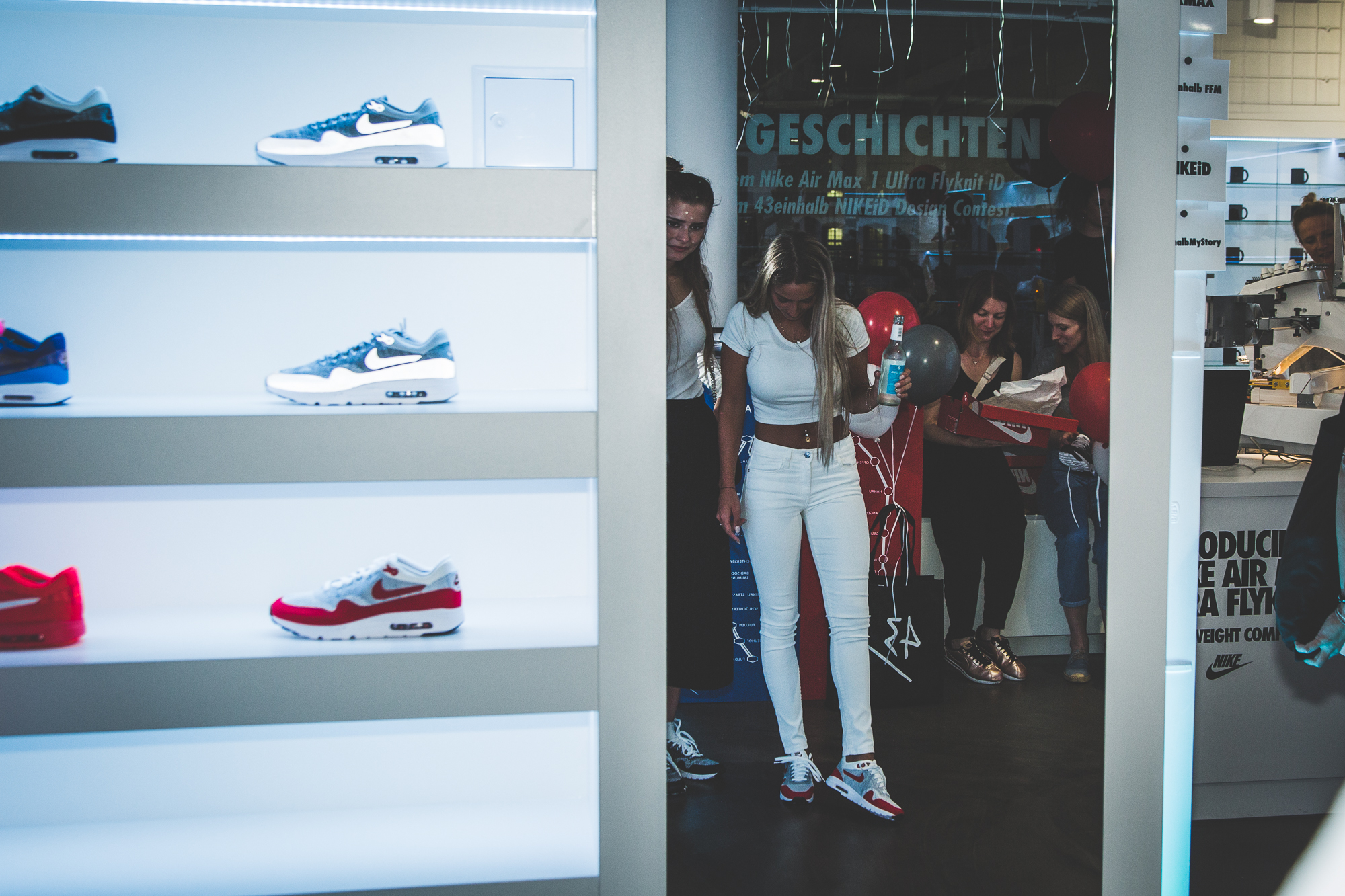 Im Anschluss an unser Pre-Opening mit Nike Sportswear letzten Donnerstag übernahmen die Damen unseren neuen Store in Frankfurt am Main und die Herren der Schöpfung wurden kurzerhand vor die Tür gesetzt. Denn bei der »Girls Night In« drehte sich alles um das Wohl der weiblichen Sneakerheads aus der Bankenmetropole. Neben dem extrem leichten WMNS Air Max 1 Ultra Flyknit warteten erfrischende Drinks, leckere Molekularküche, ein Bällebad für Sneaker Selfies und eine Customization-Station auf die Gäste, die von niemand Geringeres als Eda Vendetta durch den Abend geführt wurden. Der AM1 Ultra Flyknit, das neue Leichtgewicht von Nike, wurde von den Damen auf Herz und Nieren geprüft und konnte zusätzlich in allen erdenklichen Farben mit individuellen Schriftzügen bestickt werden.