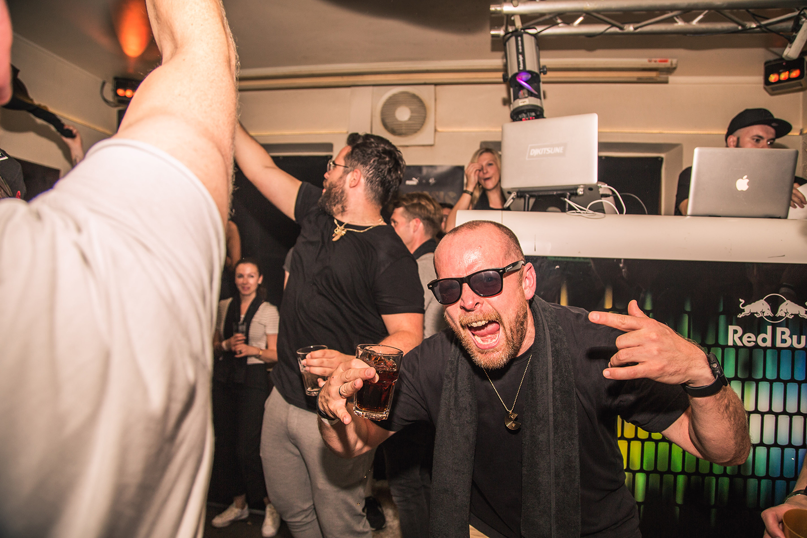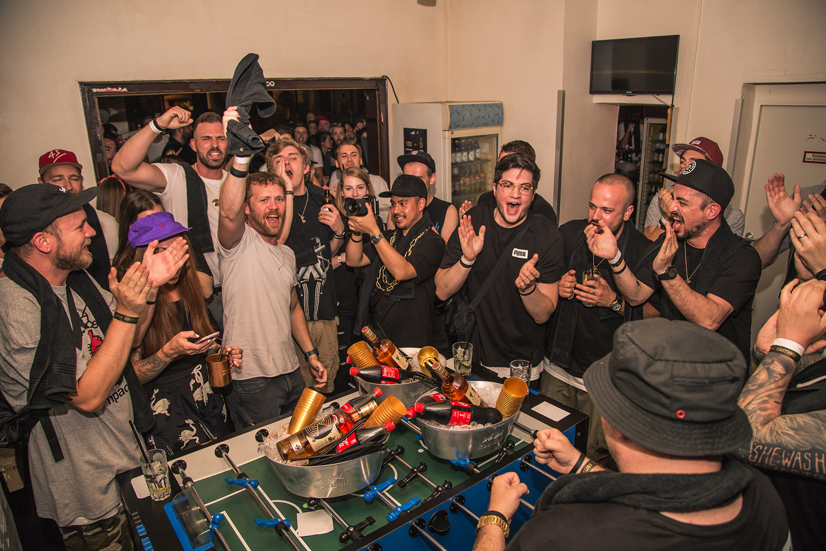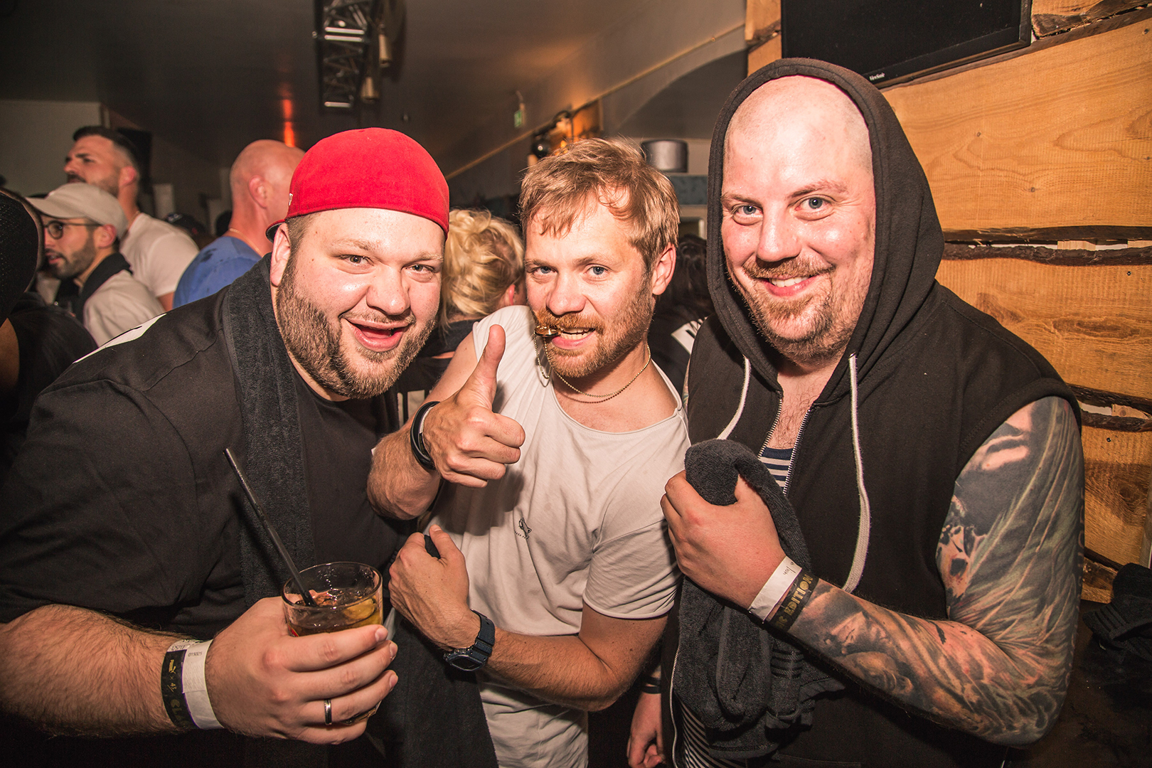 Nach dem gemütlichen Get-Together ging’s drinnen dann ordentlich zur Sache: Zu den Klängen von DJ Nicks wurden die ersten Handgranaten vernichtet, bevor DJ Kitsune die Stimmung zum Kochen brachte. Nach der Party ist vor der Party! Bei der Handtuchparty »Aftershow Party« im *neidclub hieß es dann nochmal richtig Gas geben.