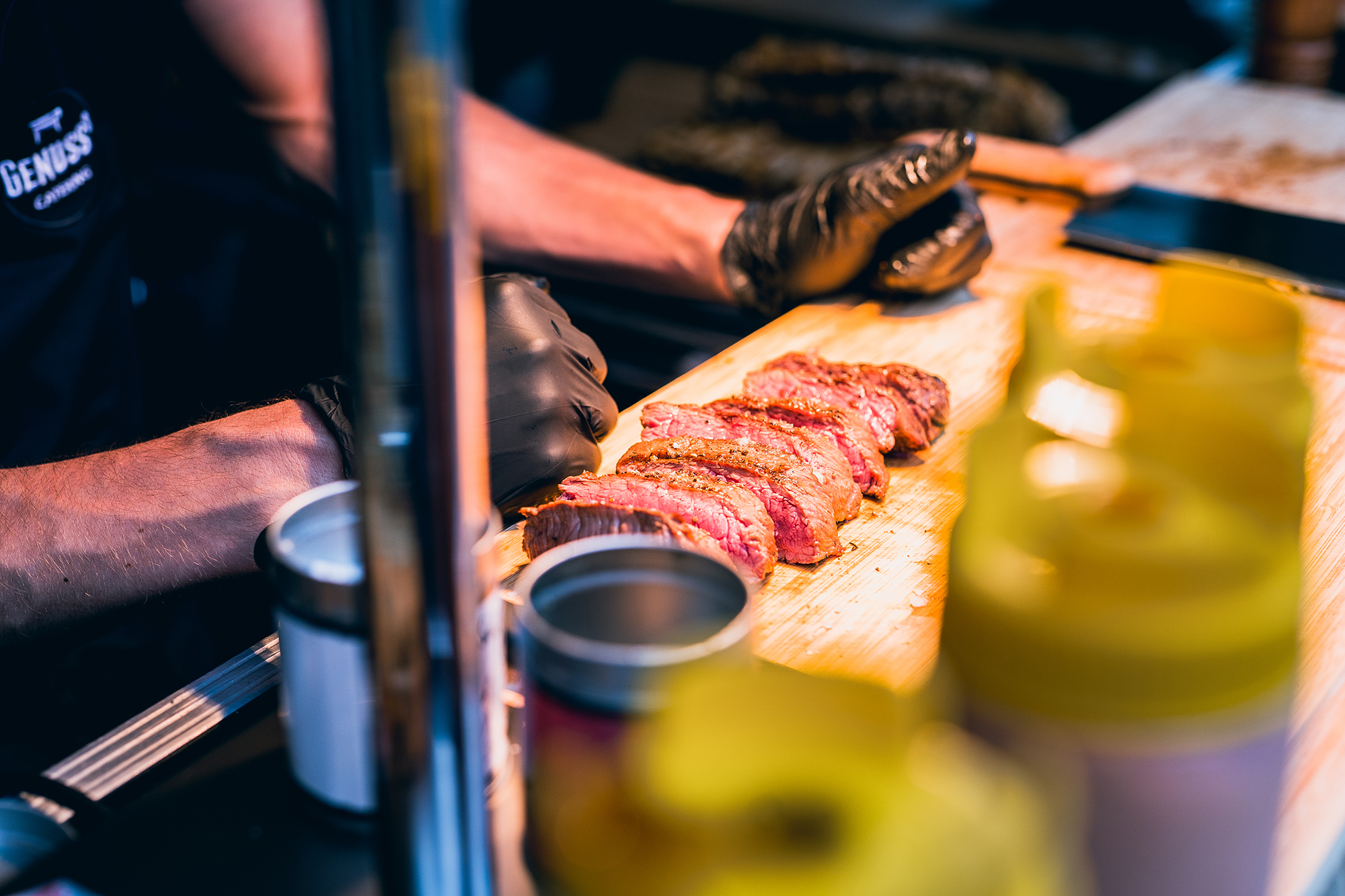 Nach einem entspannten Tag bei uns im 43einhalb »Blank Space« mit vielen Gästen aus ganz Deutschland starteten wir gegen frühen Abend bei sommerlichen Temperaturen mit einem BBQ auf der Loewen-Terasse. Die Jungs und Mädels von Genuss³ versorgten uns dabei mit ausgefallenen Salaten, leckeren Rippchen und saftigen Flanksteaks.