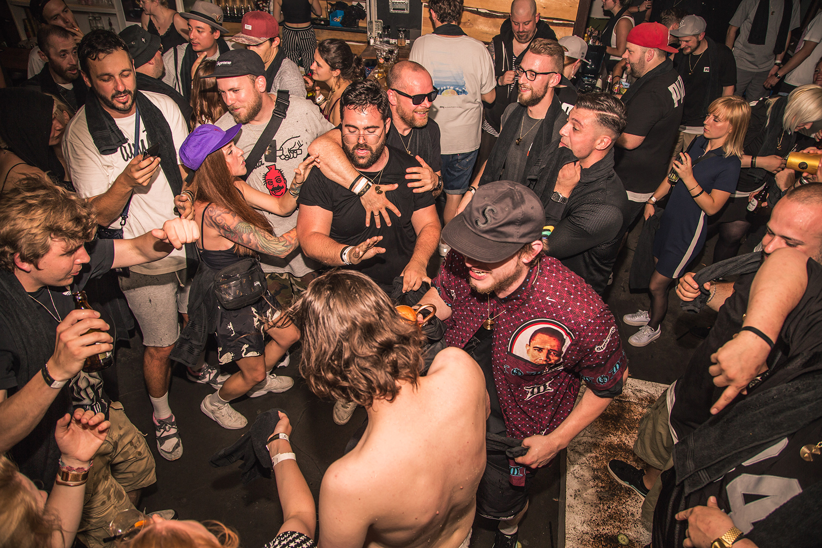 Nach dem gemütlichen Get-Together ging’s drinnen dann ordentlich zur Sache: Zu den Klängen von DJ Nicks wurden die ersten Handgranaten vernichtet, bevor DJ Kitsune die Stimmung zum Kochen brachte. Nach der Party ist vor der Party! Bei der Handtuchparty »Aftershow Party« im *neidclub hieß es dann nochmal richtig Gas geben.
