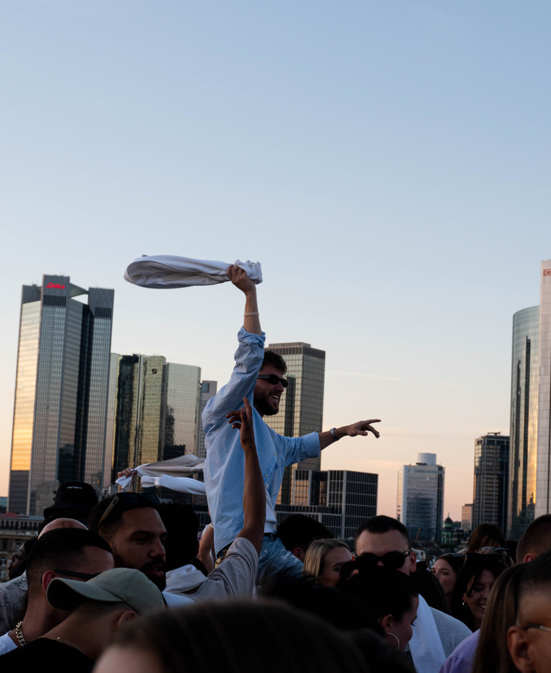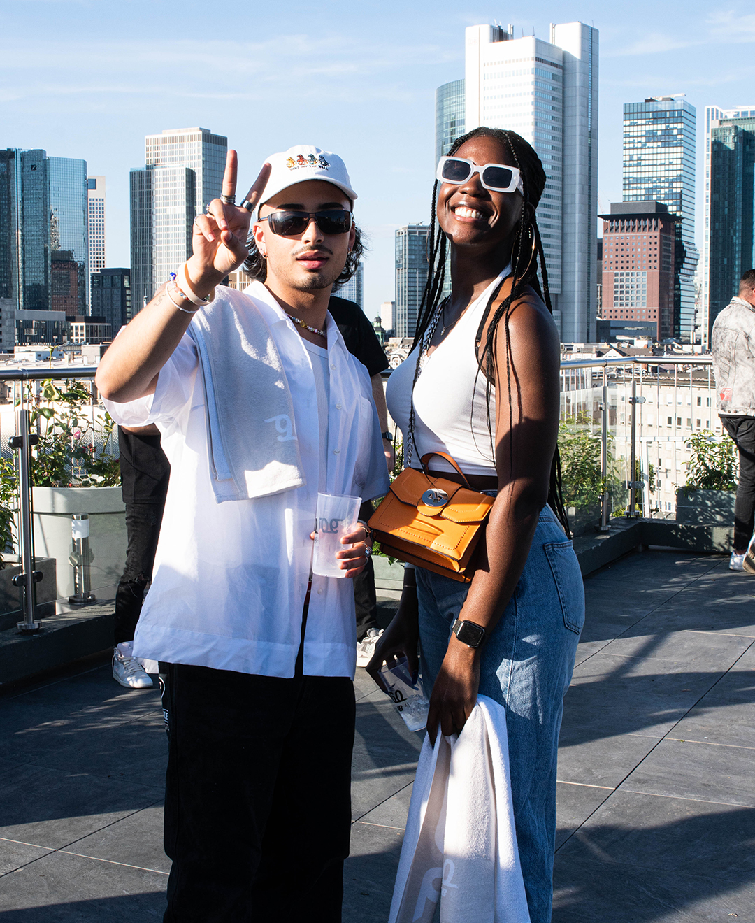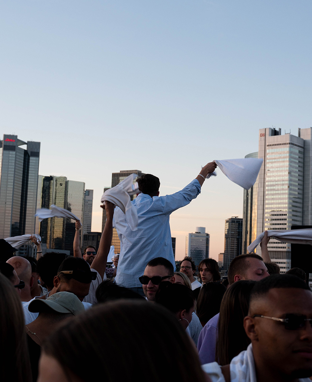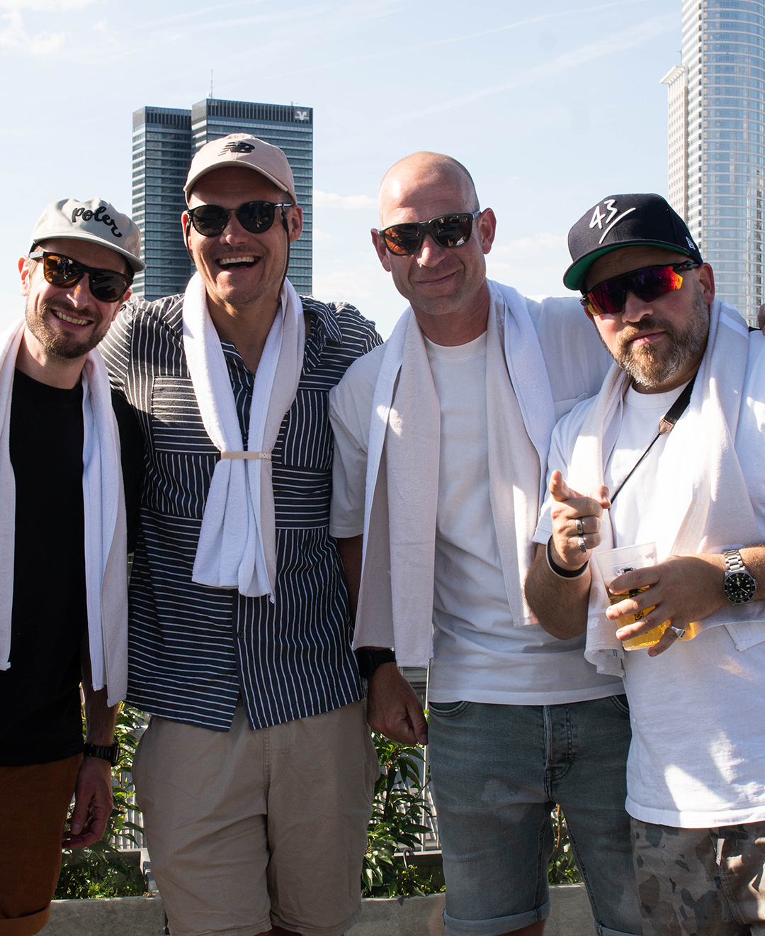 As the party started on the rooftop of the Grand Empire Hotel, there was good music on the ears from the Frankfurt DJ collective GG VYBE and the Dutch DJ wantigga. In addition to the 43einhalb towels, the »Handgranaten« were of course not to be missed at the »Handtuchparty«.