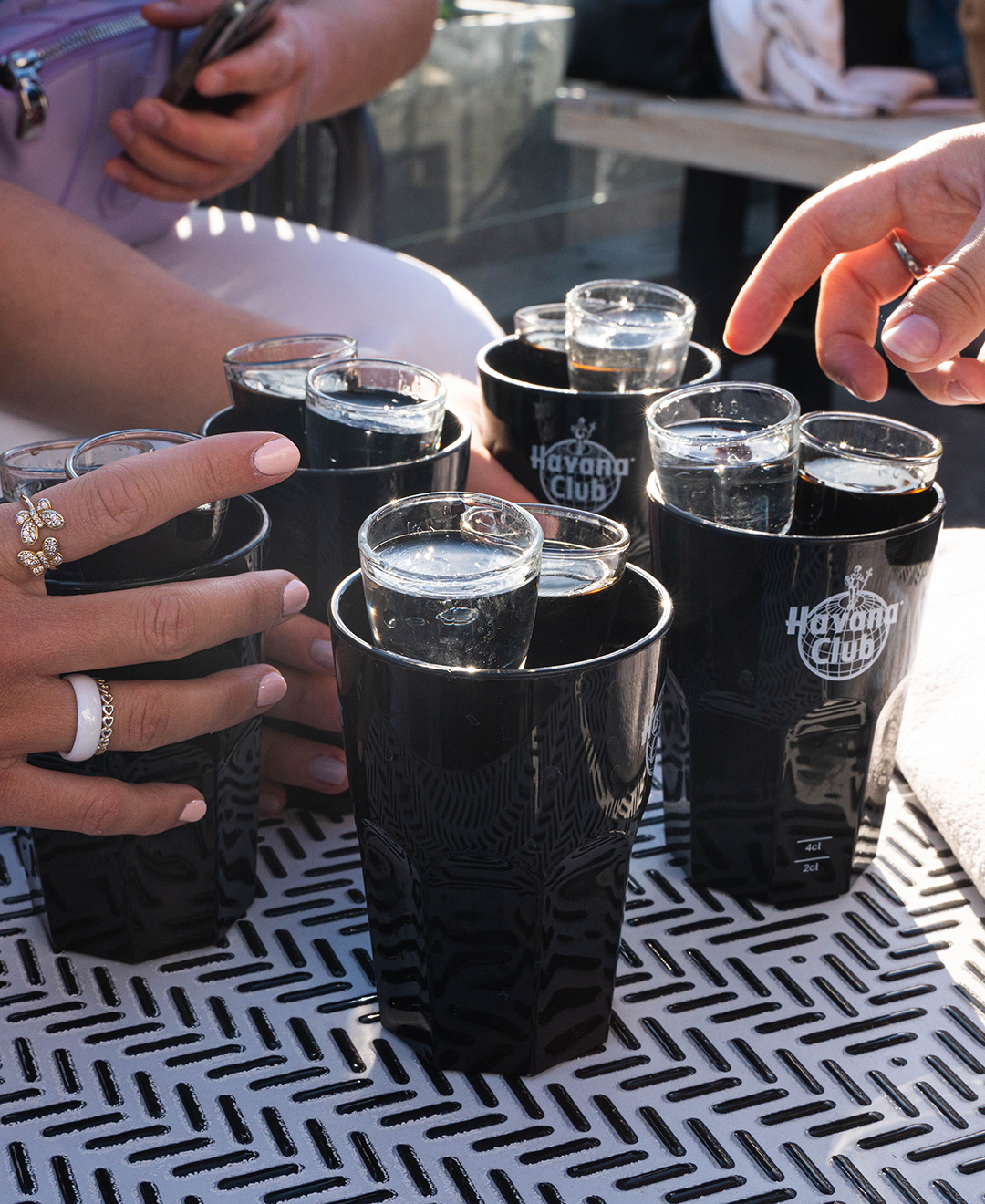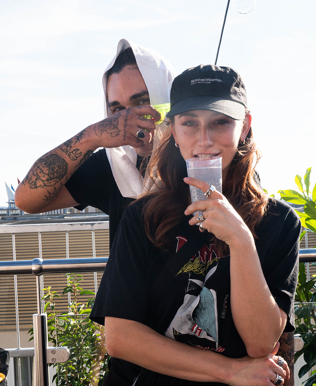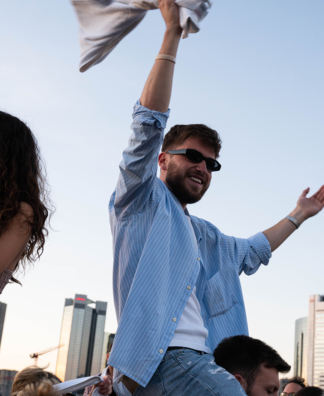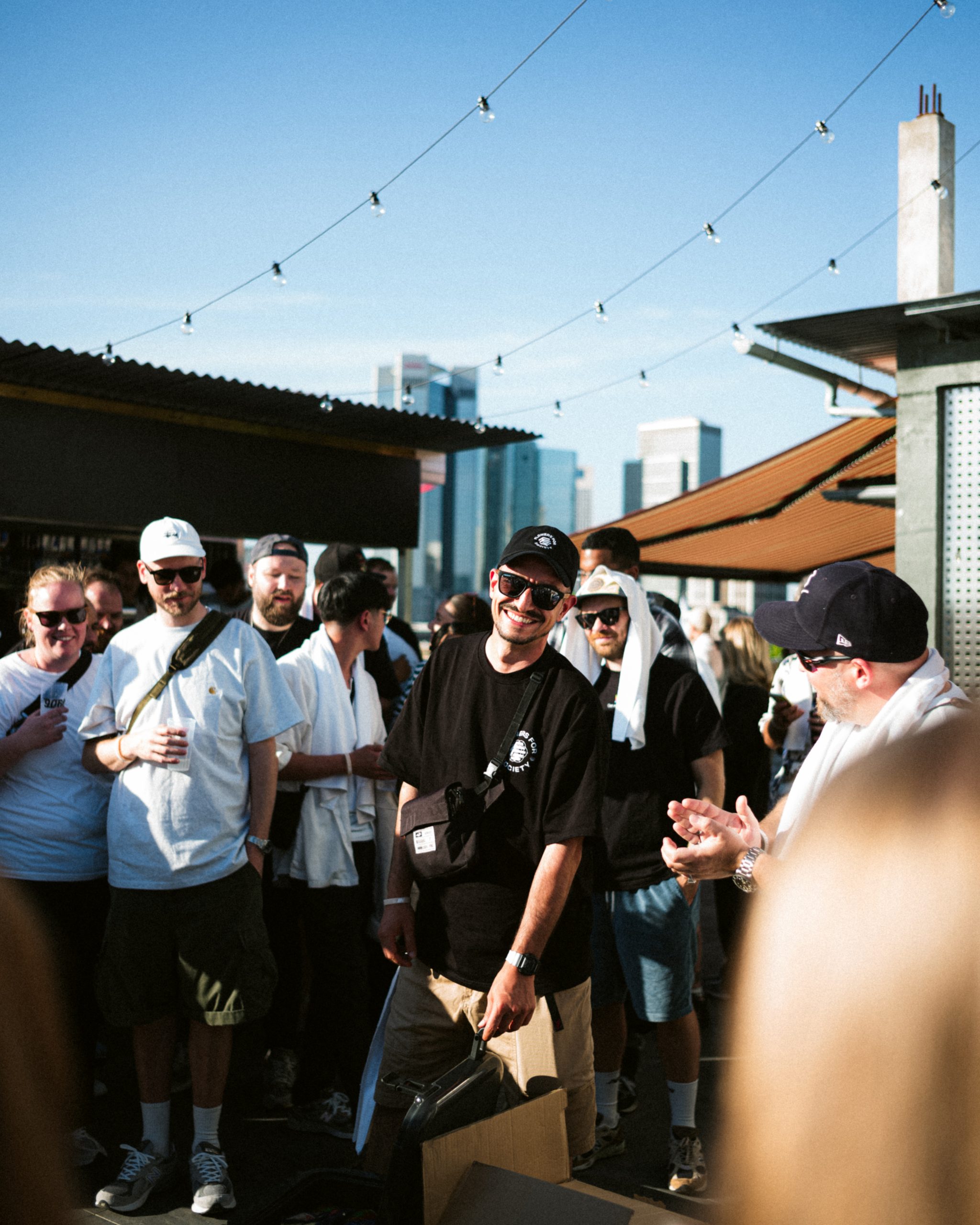 As the party started on the rooftop of the Grand Empire Hotel, there was good music on the ears from the Frankfurt DJ collective GG VYBE and the Dutch DJ wantigga. In addition to the 43einhalb towels, the »Handgranaten« were of course not to be missed at the »Handtuchparty«.