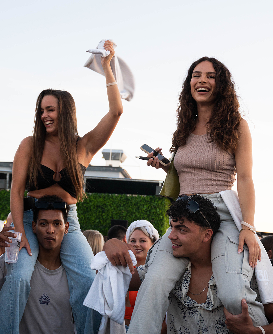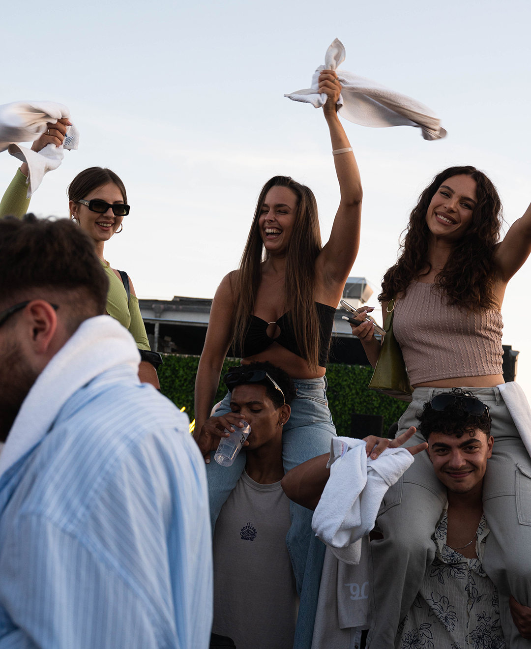 Als die Party auf dem Rooftop des Grand Empire Hotels los ging, gab es gute Musik vom Frankfurter DJ-Kollektiv GG VYBE und dem niederländischen DJ wantigga auf die Ohren. Neben den 43einhalb Handtüchern durften die Handgranaten auf der Handtuchparty natürlich nicht fehlen.