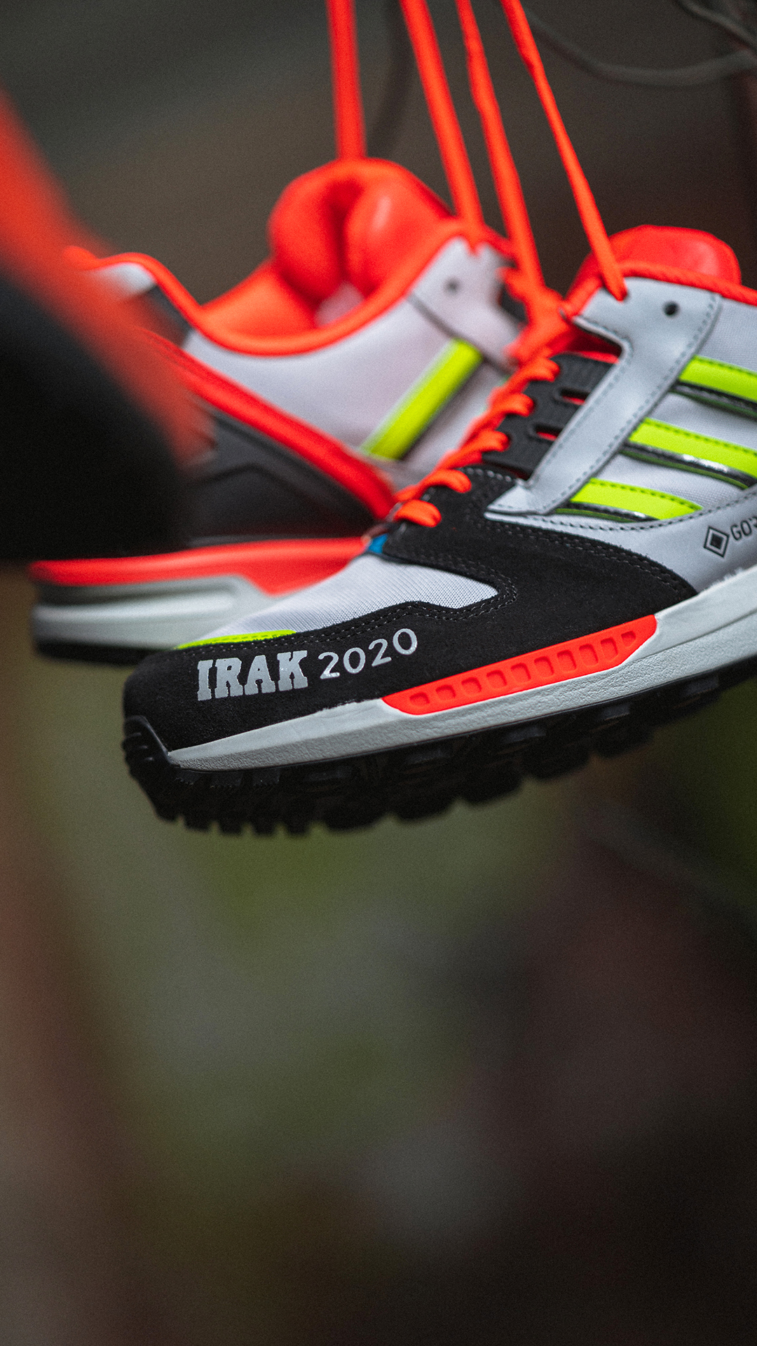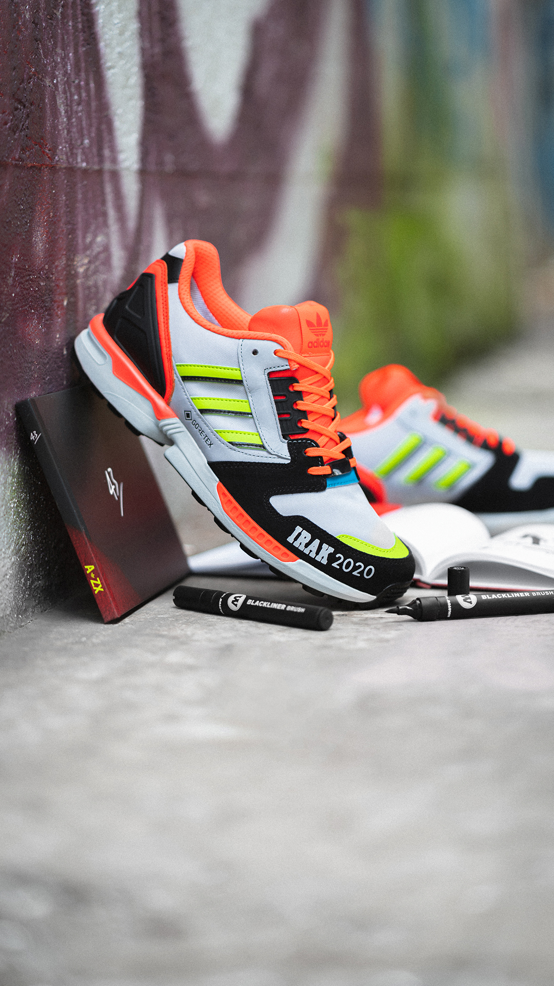 12 Jahre später ist es jetzt an der Zeit, die damals sehr erfolgreiche Zusammenarbeit neu aufleben zu lassen, denn die beiden ZX 8000 GTX aus der A-ZX Serie sind Neuauflagen der ersten IRAK-Releases, die wiederum von ZX-Modellen aus dem Jahr 1988 inspiriert wurden. Wie schon zuvor wird es auch 2020 wieder laut und bunt! Sowohl auf dem helleren als auch auf dem dunkleren Colorway des ZX 8000 GTX sind gelbe und rote Farbakzente verarbeitet, welche die Schuhe optisch hervorheben. Natürlich darf auch das damals schon heiß diskutierte, »aggressive« IRAK-Branding auf dem Mudguard der Kicks nicht fehlen. Zusätzlich besteht das Upper der von der Graffiti-Gang entworfenen Schuhe aus einem Gore-Tex Material, das Eure Füße in jeder Situation vor Feuchtigkeit schützt.