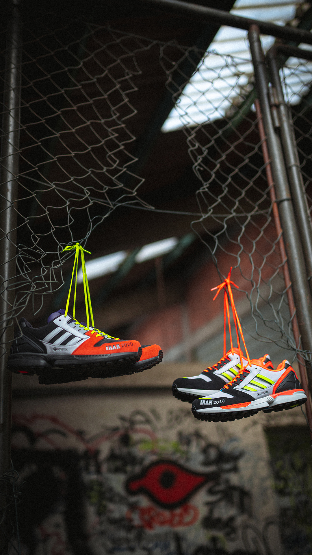 12 Jahre später ist es jetzt an der Zeit, die damals sehr erfolgreiche Zusammenarbeit neu aufleben zu lassen, denn die beiden ZX 8000 GTX aus der A-ZX Serie sind Neuauflagen der ersten IRAK-Releases, die wiederum von ZX-Modellen aus dem Jahr 1988 inspiriert wurden. Wie schon zuvor wird es auch 2020 wieder laut und bunt! Sowohl auf dem helleren als auch auf dem dunkleren Colorway des ZX 8000 GTX sind gelbe und rote Farbakzente verarbeitet, welche die Schuhe optisch hervorheben. Natürlich darf auch das damals schon heiß diskutierte, »aggressive« IRAK-Branding auf dem Mudguard der Kicks nicht fehlen. Zusätzlich besteht das Upper der von der Graffiti-Gang entworfenen Schuhe aus einem Gore-Tex Material, das Eure Füße in jeder Situation vor Feuchtigkeit schützt.