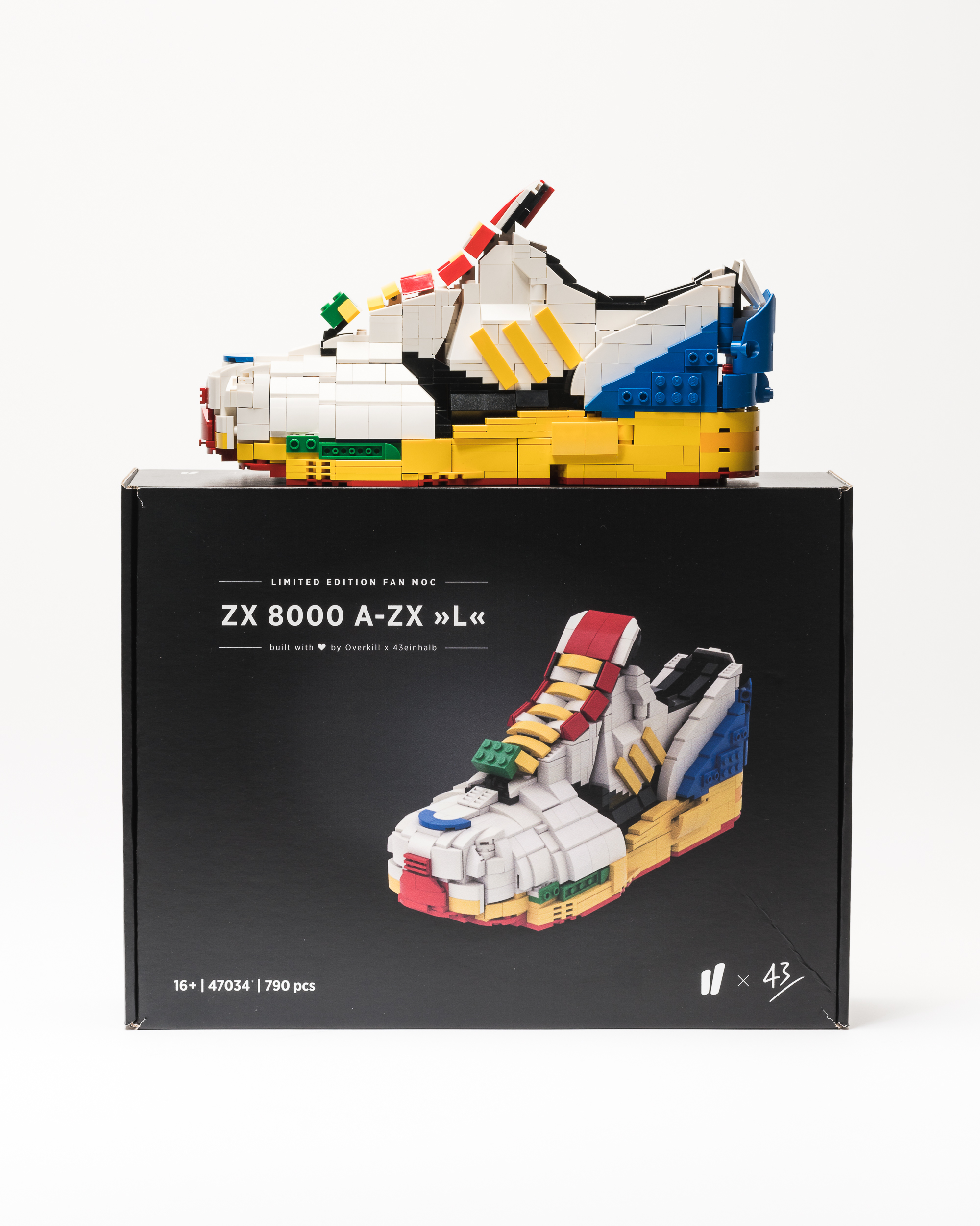 adidas x LEGO ZX 8000Um das Ganze zu realisieren haben wir uns mit richtigen LEGO-Profis zusammen getan. Ein besonderer Dank geht an dieser Stelle an Benjamin, der das Fan-MOC für uns entwickelt hat, und an Chris, Lars & Stefan, die uns geholfen haben die benötigten Steine teilweise in ganz Europa aufzutreiben. Sie haben das fast Unmögliche möglich gemacht. Schaut mal auf ihren Kanälen vorbei, was sie sonst noch so auf dem Kasten haben. Die Jungs rocken!
