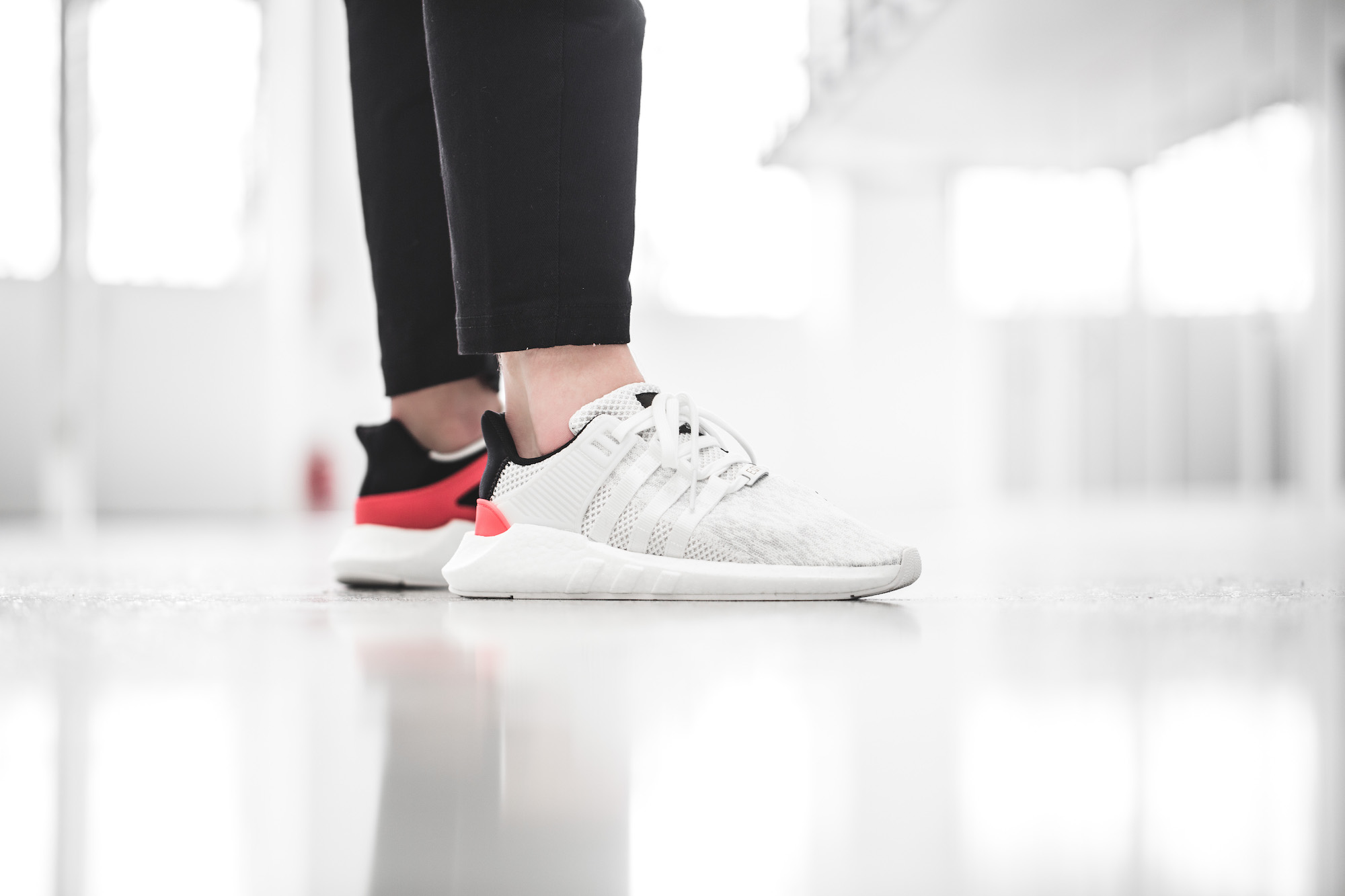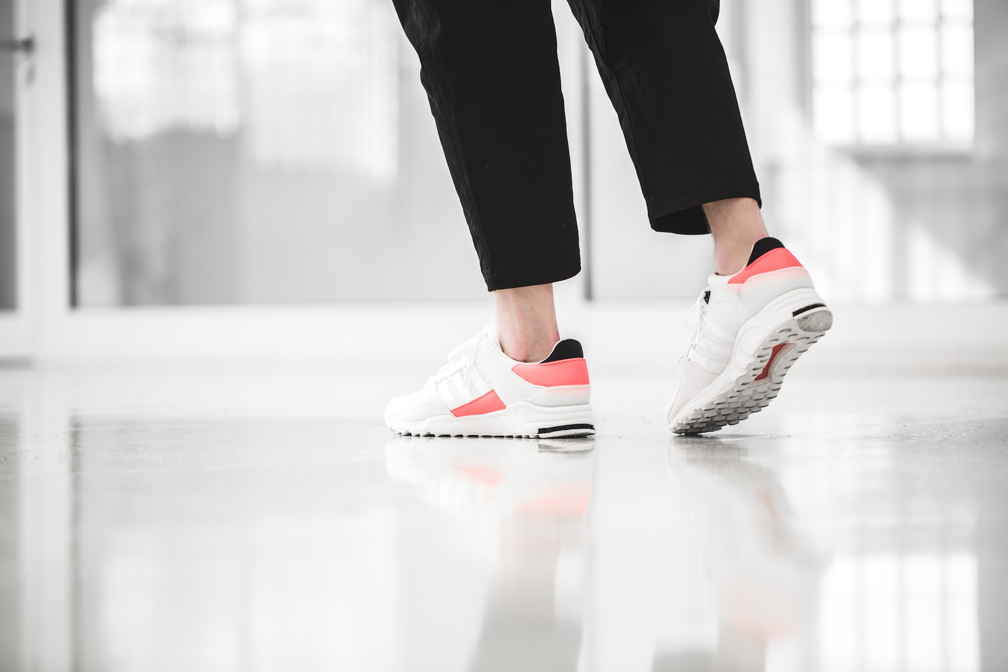 Was den EQTs der zweiten Generation allerdings die nötige Dynamik verliehen hat, war die brandneue Farbe »Turbo Red«. Sie bildet die Komplementärfarbe des legendären »Sub Green« von adidas und eroberte die Herzen der Sneakerfans im Sturm. Mit dem zweiten Drop der Erfolgsmodelle setzt der Sportartikelhersteller aus Herzogenaurach nun auf frühlingshaftes Weiß mit leichtem Pixel-Muster »White Pixel«.