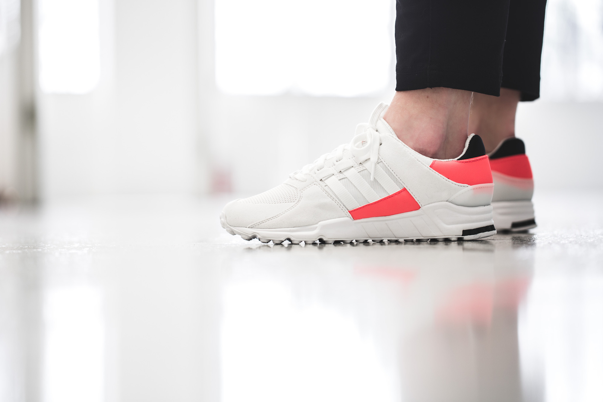 Was den EQTs der zweiten Generation allerdings die nötige Dynamik verliehen hat, war die brandneue Farbe »Turbo Red«. Sie bildet die Komplementärfarbe des legendären »Sub Green« von adidas und eroberte die Herzen der Sneakerfans im Sturm. Mit dem zweiten Drop der Erfolgsmodelle setzt der Sportartikelhersteller aus Herzogenaurach nun auf frühlingshaftes Weiß mit leichtem Pixel-Muster »White Pixel«.