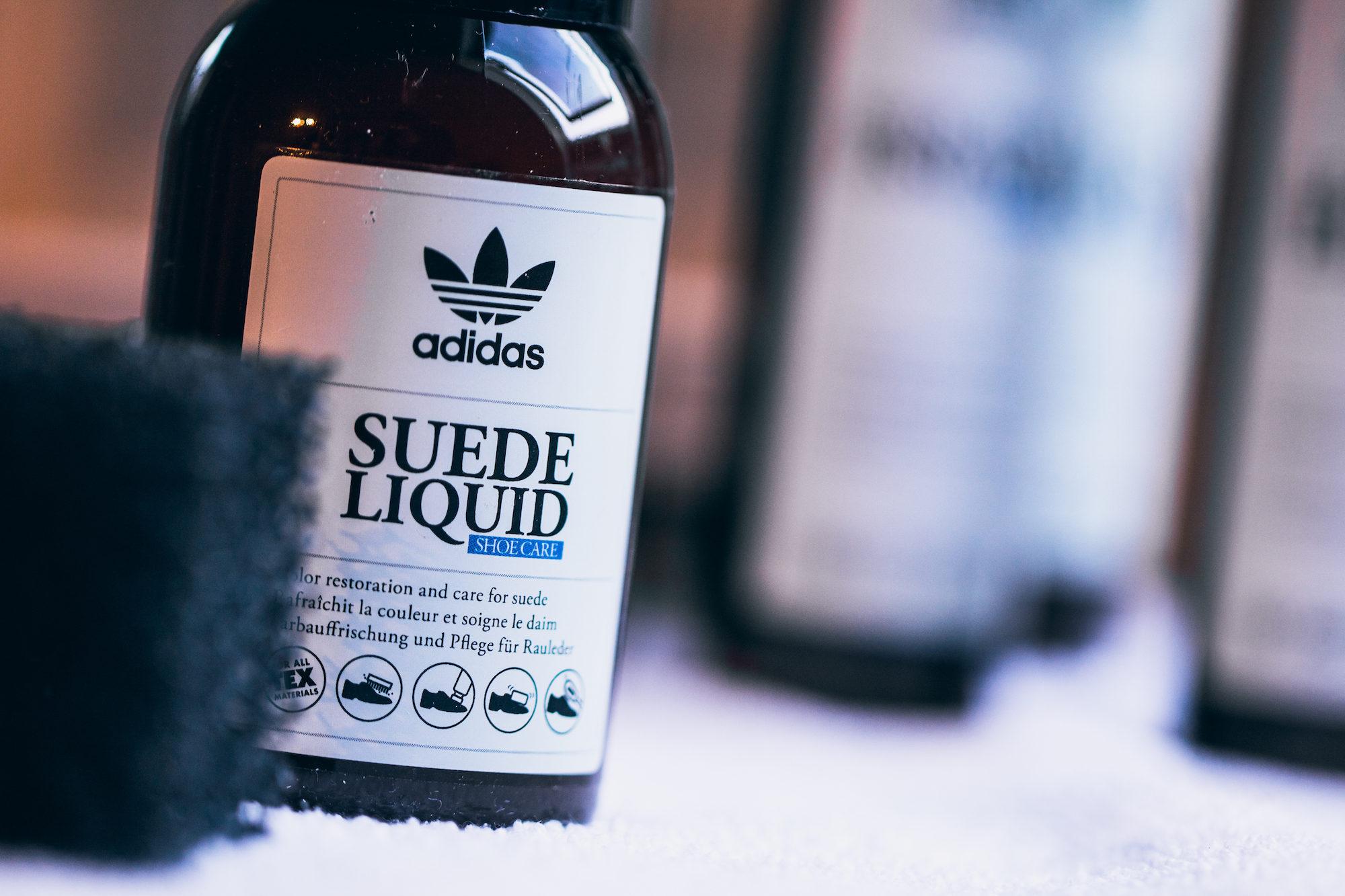 Das neue »Shoe-Care Programm« von adidas Originals nimmt sich diesem Problem an und präsentiert gleich fünf hochwertige Produkte, die auf unterschiedliche Obermaterialien abgestimmt sind. Neben dem »Suede Liquid« zur Farbauffrischung und Pflege für Wildleder, einem »Leather Elixir« – speziell für Glattleder – reiht sich ein »Repellent Spray« zum Schutz vor Nässe und Schmutz.
