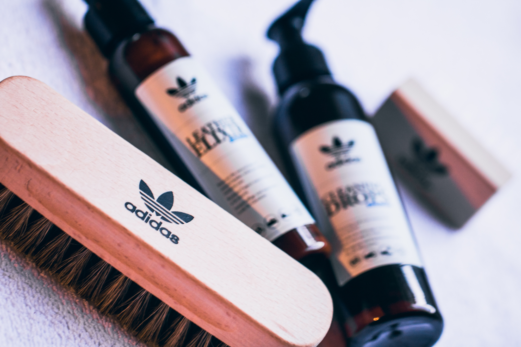 Das neue »Shoe-Care Programm« von adidas Originals nimmt sich diesem Problem an und präsentiert gleich fünf hochwertige Produkte, die auf unterschiedliche Obermaterialien abgestimmt sind. Neben dem »Suede Liquid« zur Farbauffrischung und Pflege für Wildleder, einem »Leather Elixir« – speziell für Glattleder – reiht sich ein »Repellent Spray« zum Schutz vor Nässe und Schmutz.