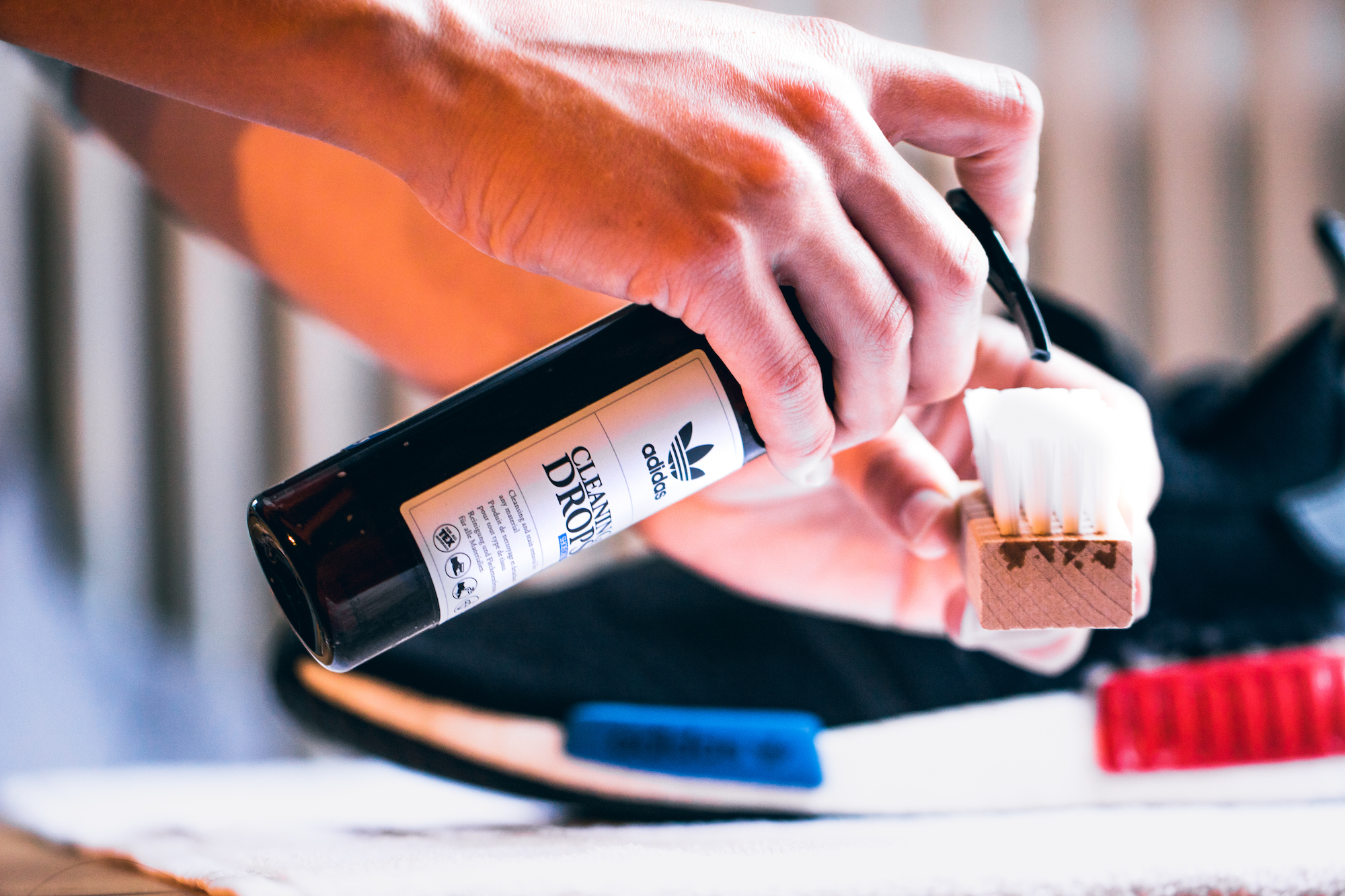 Der Star der neuen Reinigungs- und Pflegeserie ist das »Cleaning Drops Set«. Das Kit enthält ein Reinigungs-Fluid in einer 140ml Pump-Flasche, einen Reinigungsschwamm und eine Bürste für extra schwierige Stellen. Und am Ende jeder Reinigung versorgt das »Shoe & Foot Essence Spray« eure Sneaker mit angenehmer Frische! Besonders gut gefällt uns die schlichte Verpackung der Produkte, die zudem noch ökologisch abbaubar ist!