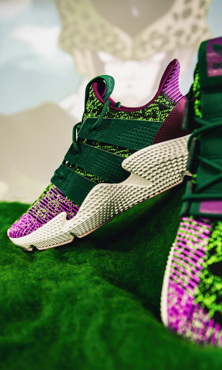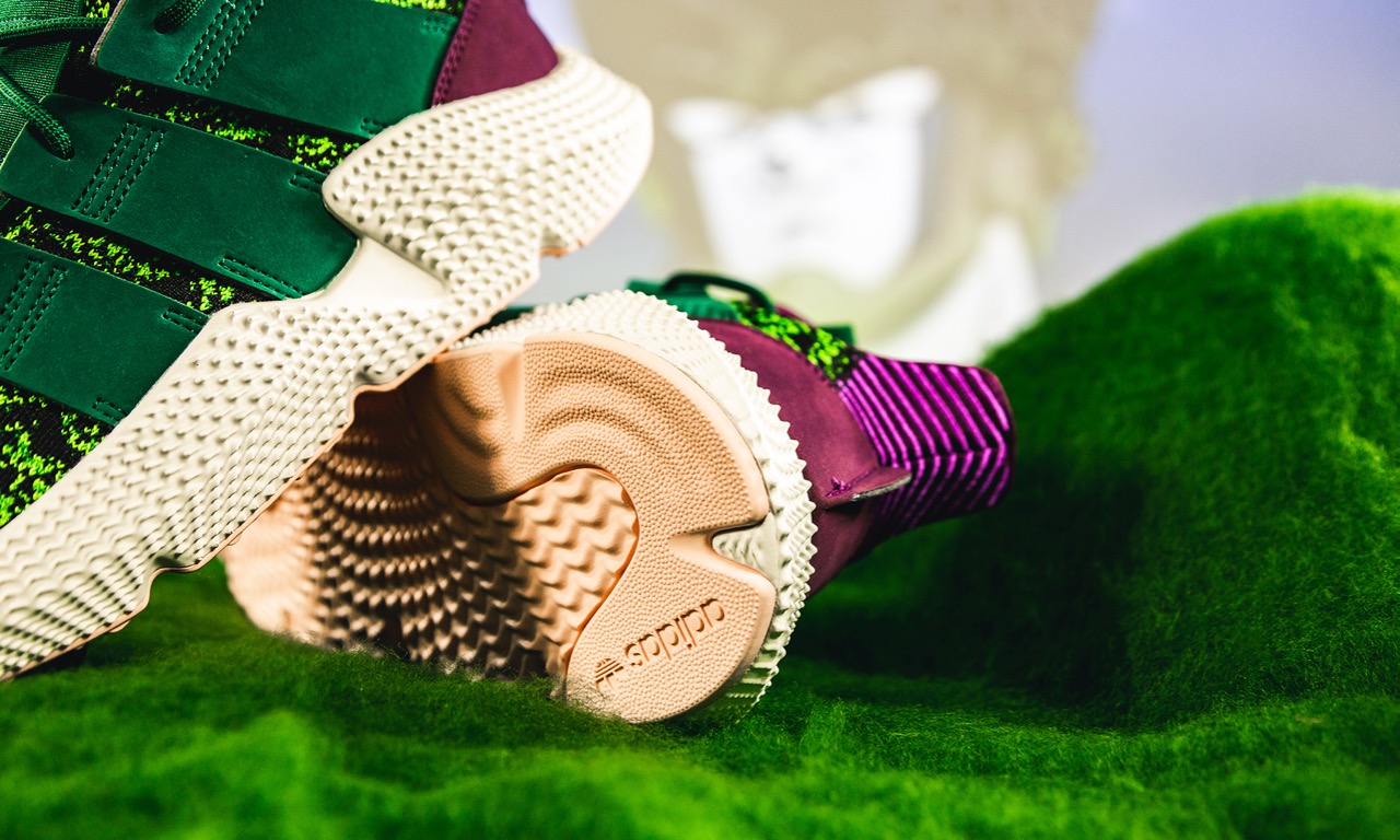 Beim Duell zwischen Son Gohan und Cell setzt adidas auf »Jungspunde«, so wurden mit Deerupt und Prophere Modelle gewählt, die erst in den letzten 12 Monaten präsentiert wurden. Die Inspiration zum Netzlook des adidas Deerupt kommt aus den Achtzigern – Dellinger Web wurde damals als Sohlenstabilisator bei Modellen wie dem New York und Marathon Trainer genutzt. Der Prophere kombiniert auf unkonventionelle Weise verschiedenste Materialien und schafft mit seiner überproportionierten Sohle einen unverkennbaren Look!