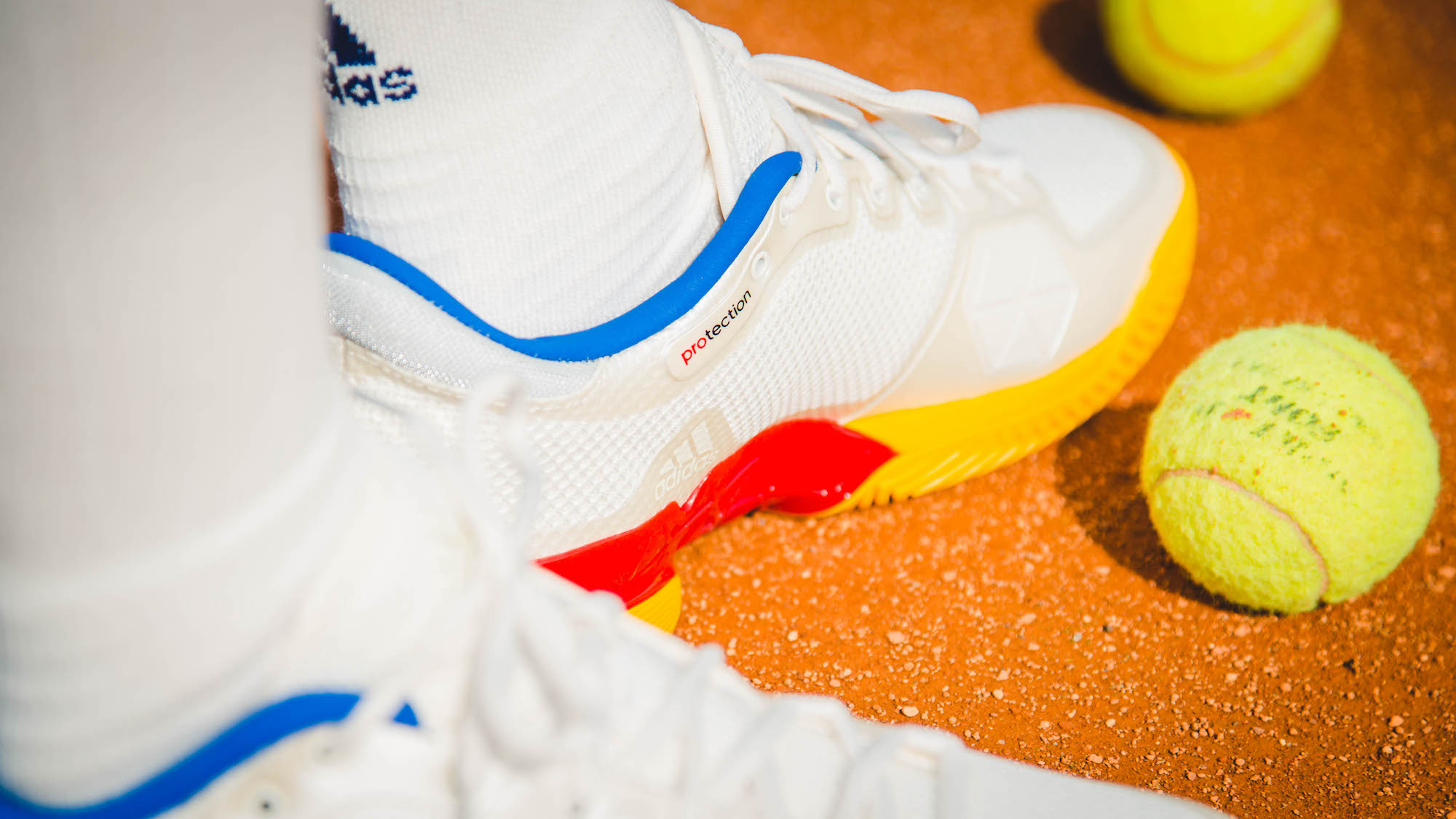Das Resultat: Ein Mix der imposantesten Stilrichtungen der damaligen Tennis-Era, getragen von einem unverwechselbaren Colorblocking aus Weiß, Gelb, Rot und Blau. Um den heutigen technischen Anforderungen gerecht zu werden, wurden die ikonischen Kleidungsstücke zudem mit modernen Knit-Materialien, sowie patentierten adidas-Technoligien wie Climacool ausgerüstet.