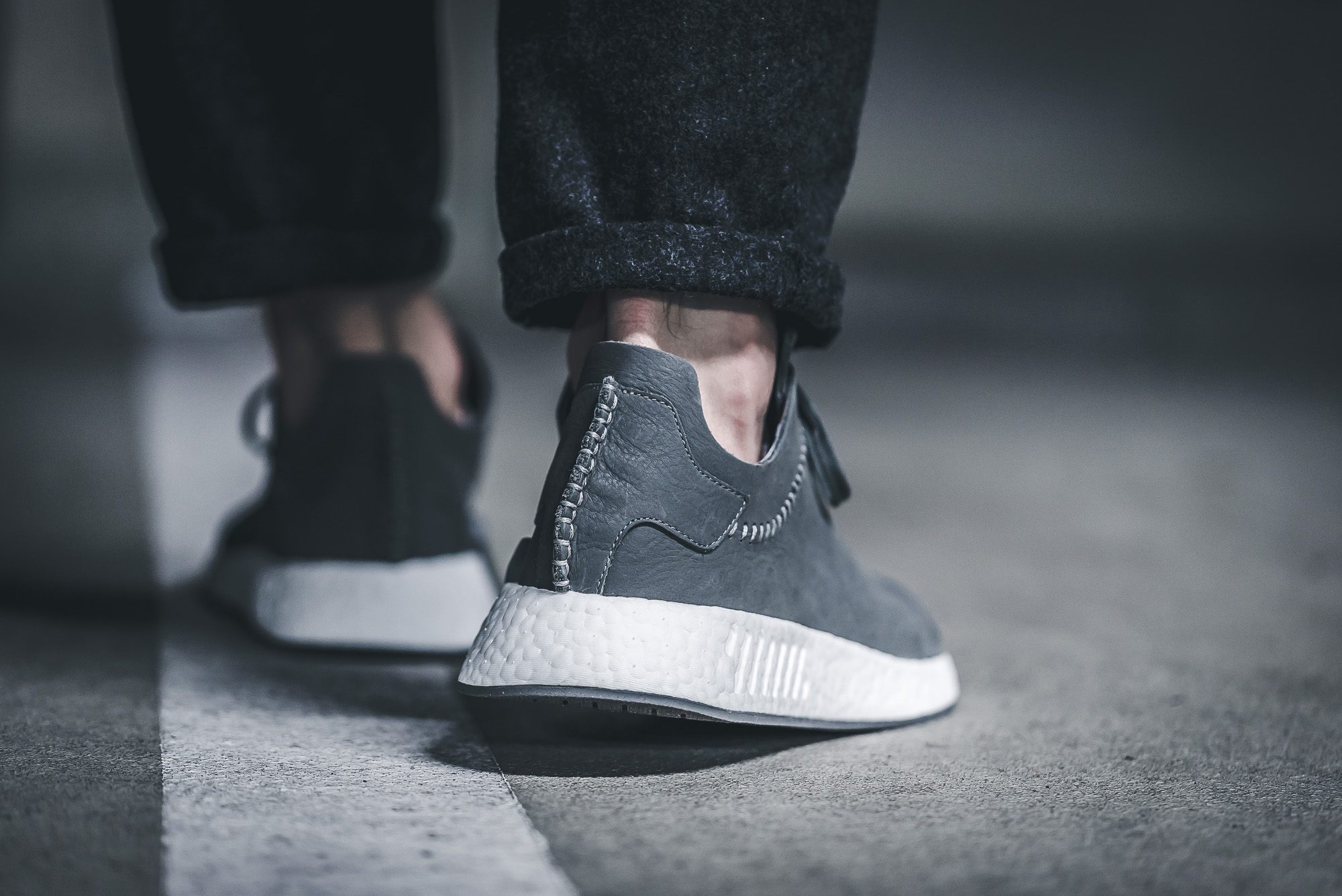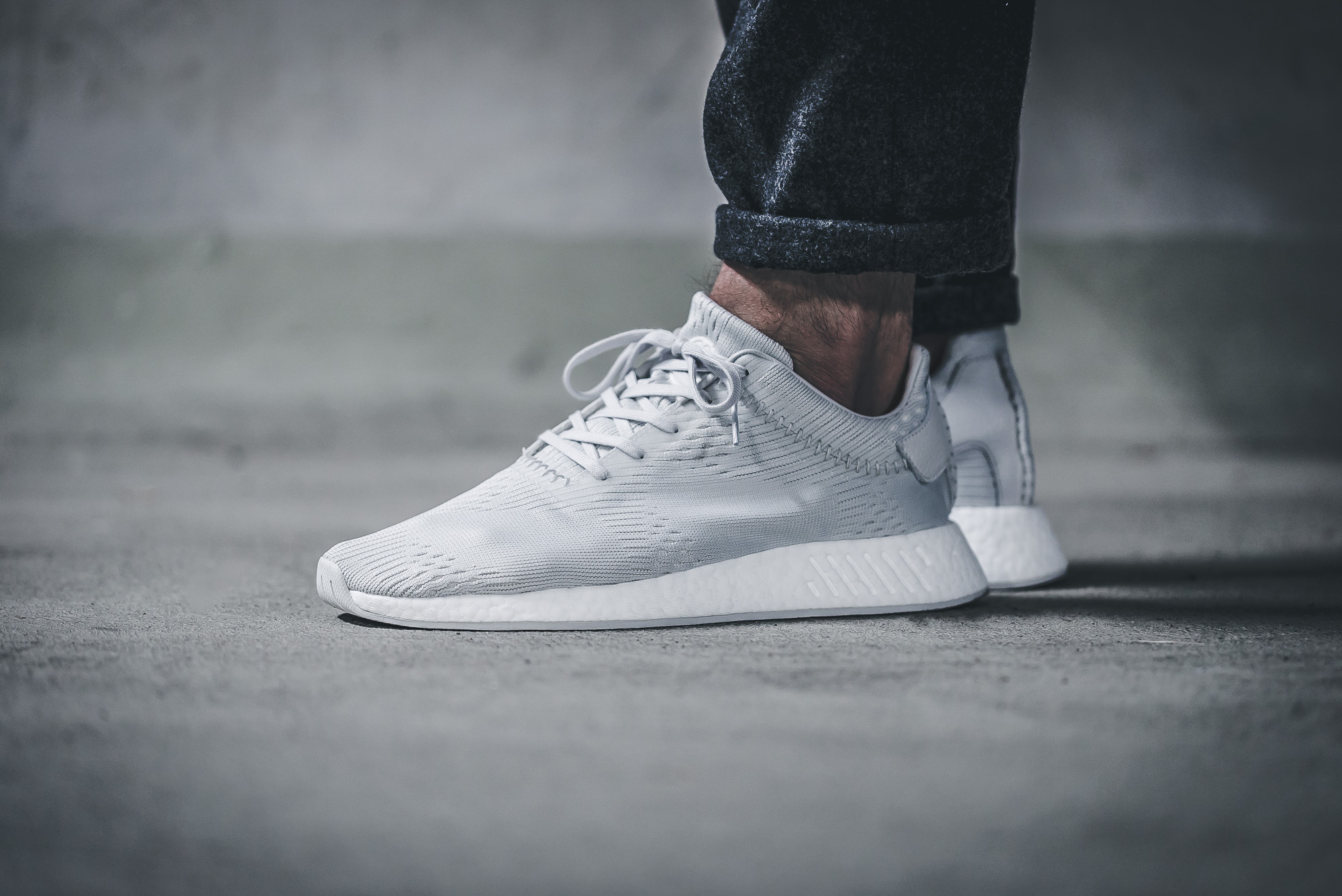 Dagegen orientiert sich der hellgraue NMD R1 mit seinem Primeknit-Upper stärker an den Kleidungsstücken der Kollektion, welche mit ihren feinen Baumwoll- und Leinen-Materialien aufwarten.