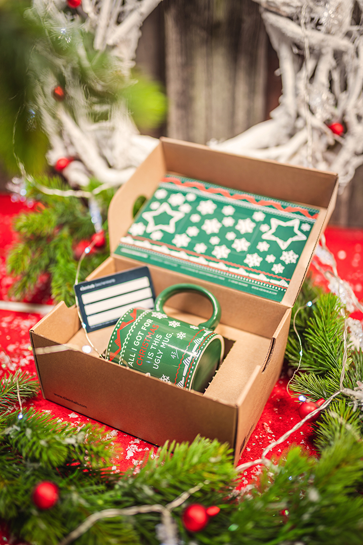 - Kaufe einen Gutschein im Wert von mindestens 25€ und bekomme eine unserer »ALL I GOT FOR CHRISTMAS IS THIS UGLY MUG« Tassen dazu.