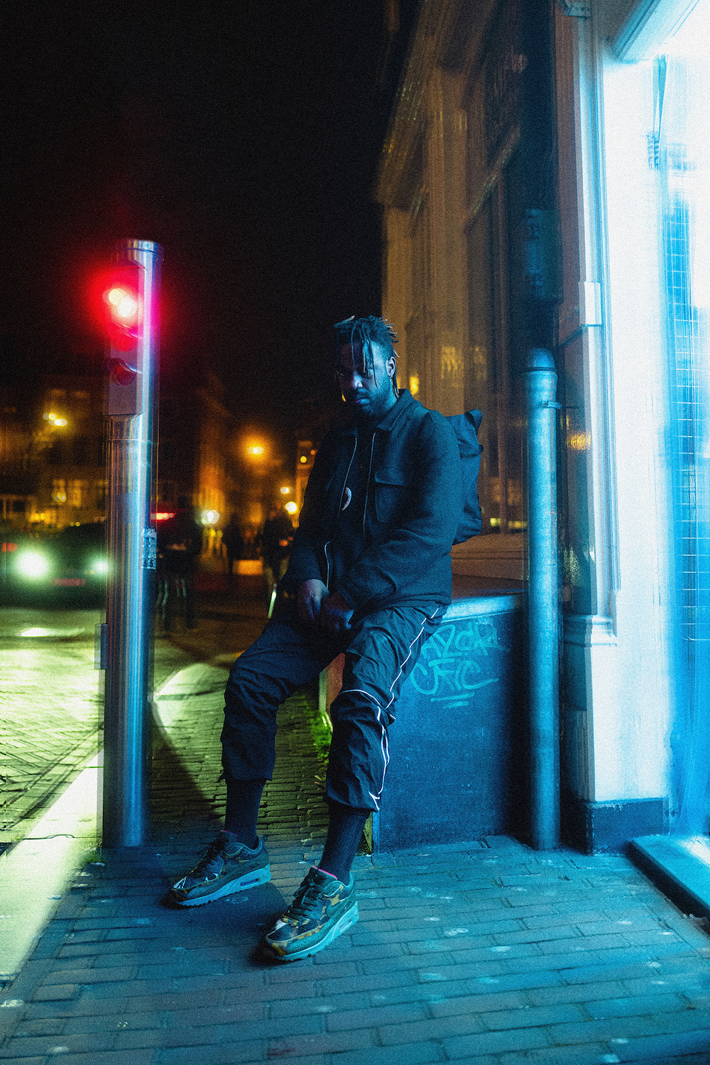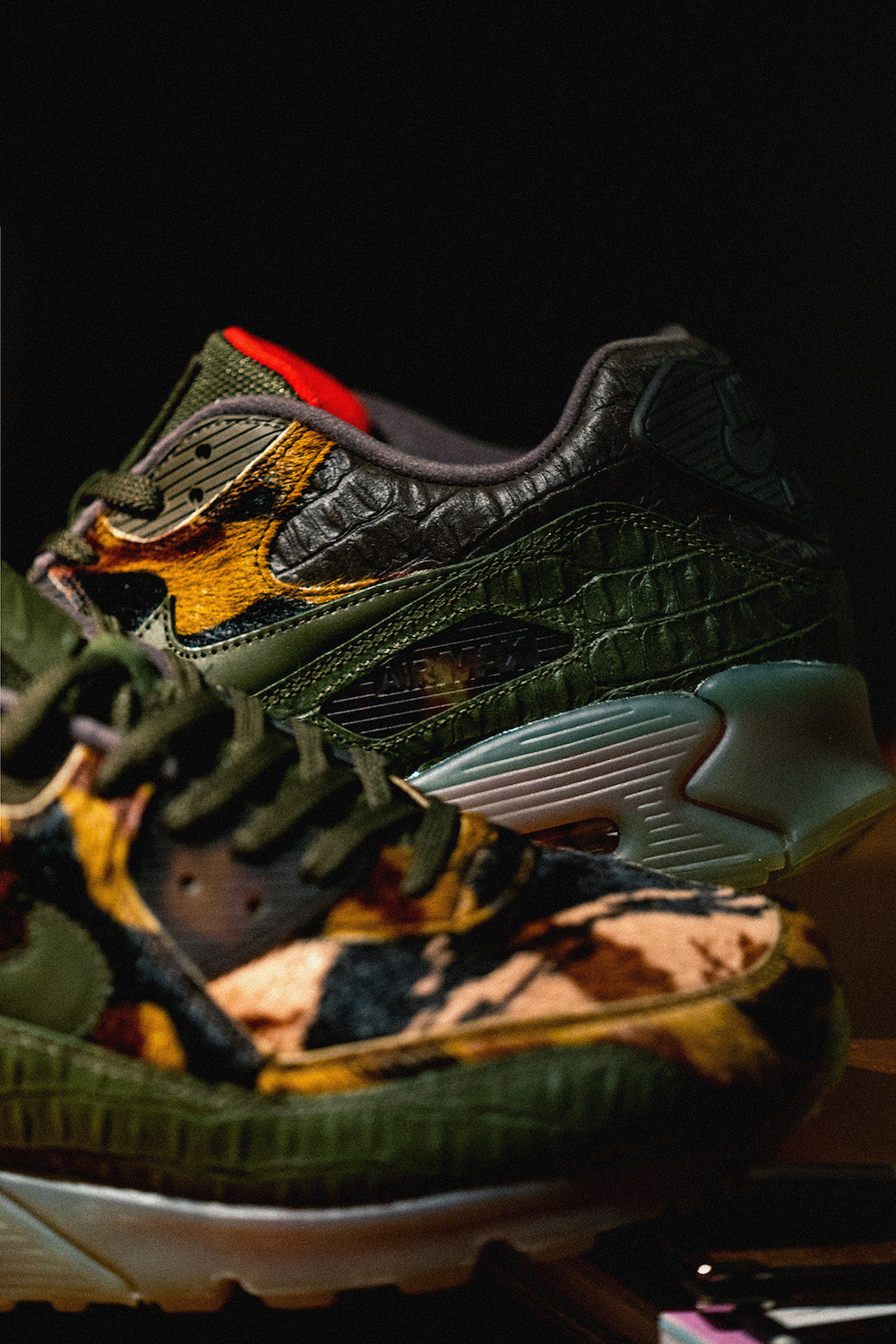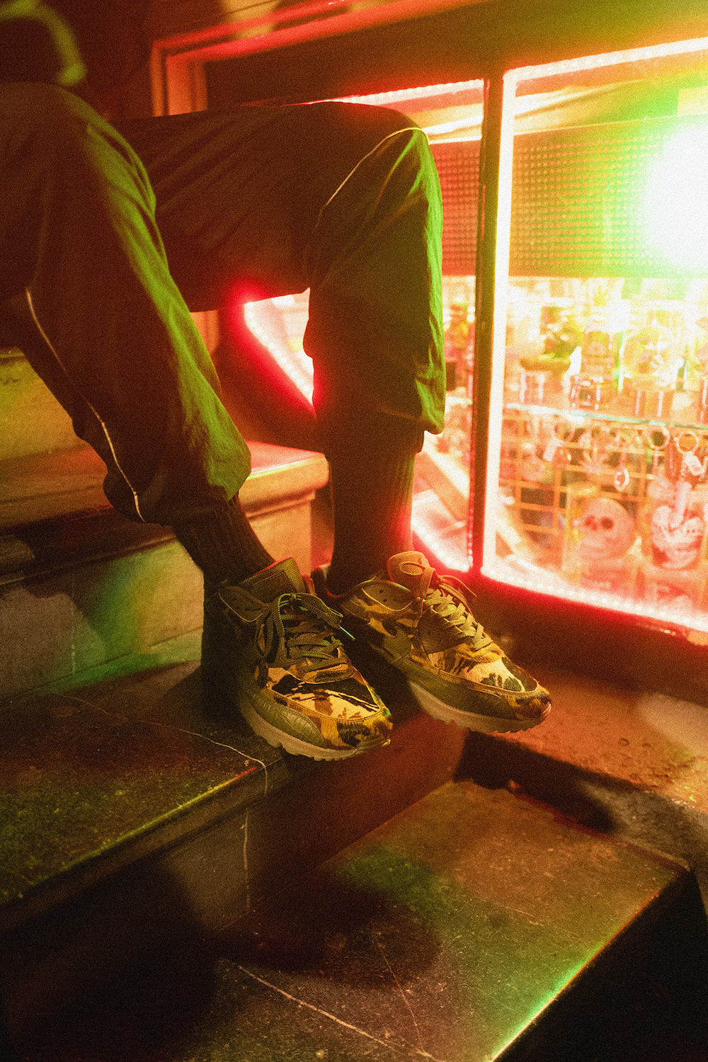 Sascha: Wir mussten ein wenig umplanen, da wir leider nur eine US13 vom Nike Air Max 90 »Go Nuts« mit nach Amsterdam nehmen konnten. Alle Vorbereitungen meinerseits waren damit hinfällig und wir hatten somit on top die Challenge, ein Model in Amsterdam mit solch einer Schuhgröße zu finden. Aus Fotografensicht ist es einfach schwierig, einen so großen Schuh ansehnlich aussehen zu lassen.