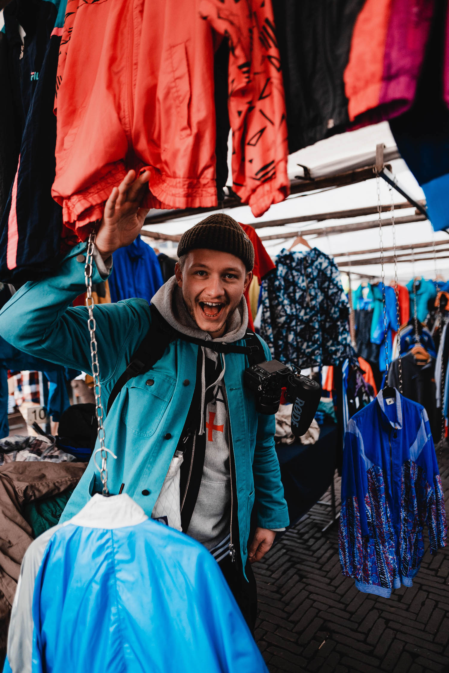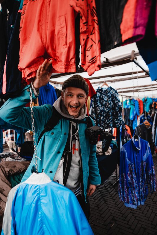 Sascha: Wir haben erst am Ende des Tages ein passendes Model gefunden, wodurch es uns dann leider nicht mehr möglich war, mit ihm ein Vintage Ouftit auszusuchen. Jedoch hat Amsterdam einiges zu bieten, wenn es um Vintage Shopping geht. Es gibt dort viele Stores, die nur darauf warten, beshoppt zu werden!