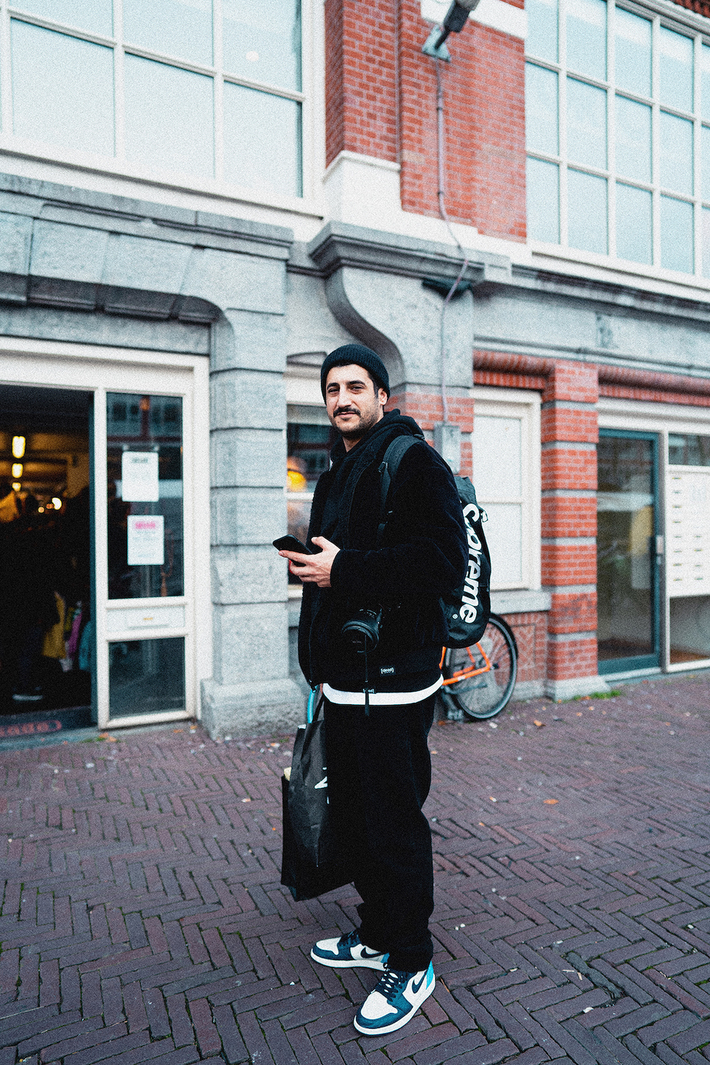 Damian: Für mich war es kurz gesagt der Hammer! Noch mal ein großes Danke an das 43einhalb Team und Nike Sportswear für die Einladung! In den Tagen vor der Abreise war ich ehrlich gesagt schon ziemlich aufgeregt. Wir wussten ja nicht mit wem und wo es hingehen wird. Als dann klar war, dass ich mit dem guten Sascha nach Amsterdam fahren werde, dachte ich nur so »geil«! Der Nike Air Max 90 »Go Nuts« passt vom Style auch perfekt nach Amsterdam, das konnte nur gut werden.