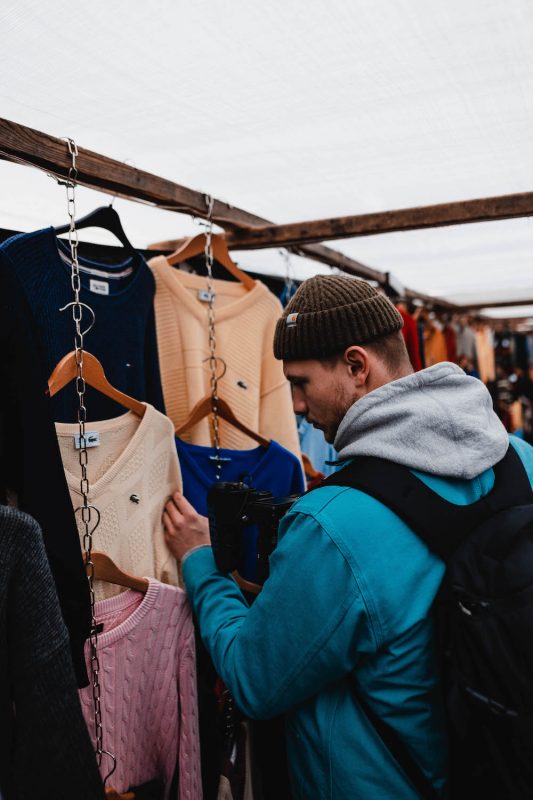Damian: Durch Vintage Shops zu ziehen hat ‘ne Menge Spaß gemacht! Wir haben uns Freitagabend drei Läden rausgesucht, in denen wir auf die Jagd gehen wollten. Die einzelnen Boutiquen waren richtig cool aufgemacht. Angefangen von Lacoste Pullis bis hin zu Hawaiihemden oder Pelzen war wirklich alles in diesen Shops vertreten. Als wir zum letzten Vintage Shop gekommen sind, haben wir festgestellt, dass vor diesem Store sogar noch ein riesiger Trödelmarkt ist.