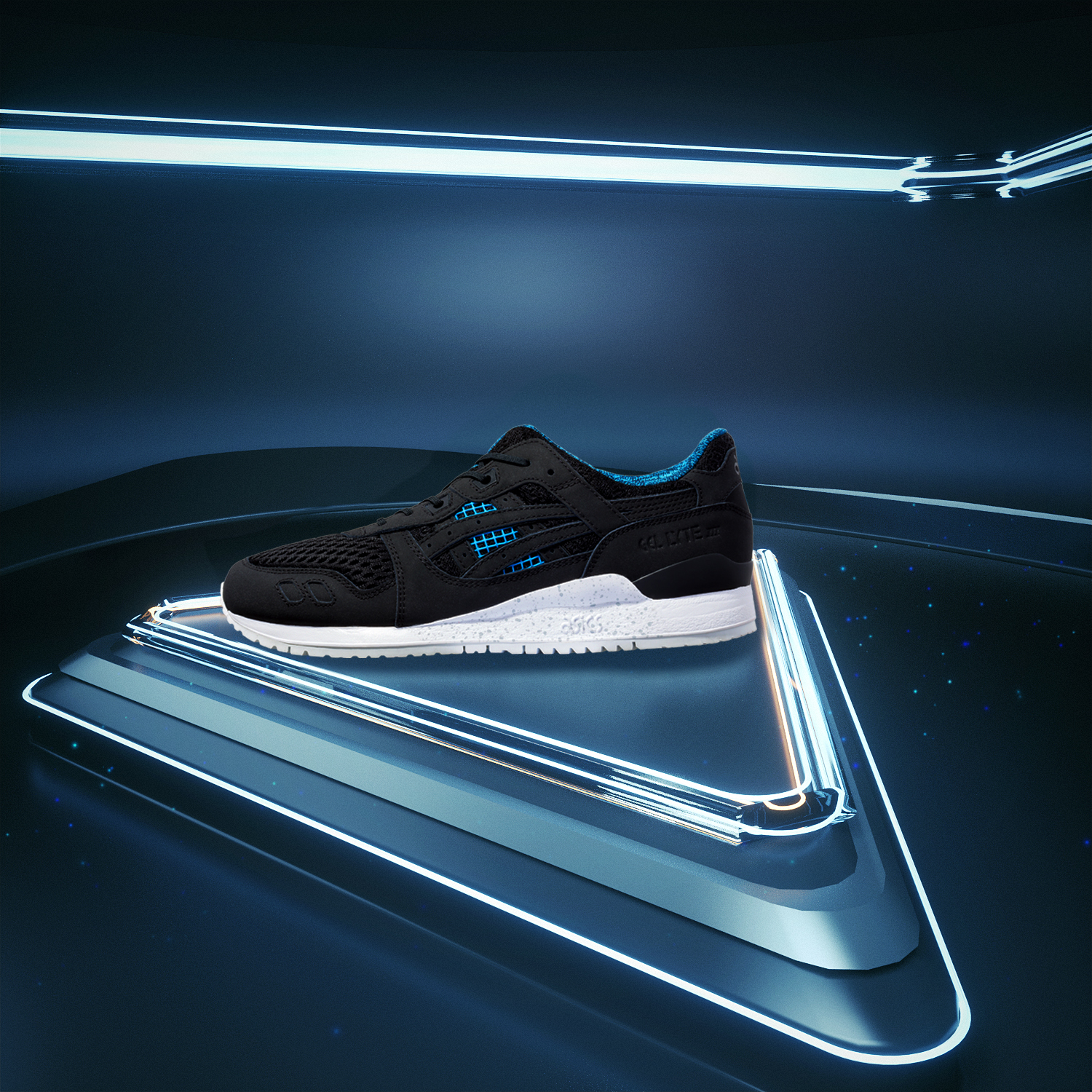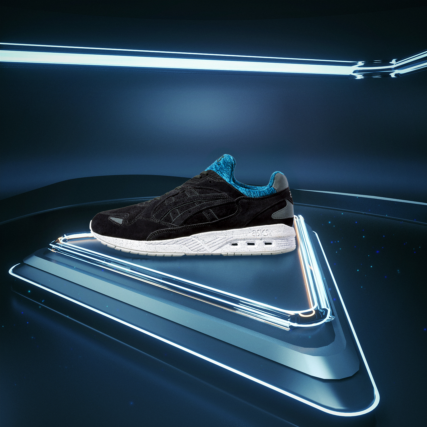 Das Pack enthält den Asics Gel Lyte III, den Gel-Lyte V und den GT-Cool Xpress. Dabei erscheinen alle drei Silhouetten in passenden Colorways. Schwarzes Obermaterial, blaue Akzente, gesprenkelte Sohlen und grafische Muster auf dem Innenfutter ziehen sich durch die komplette Serie.