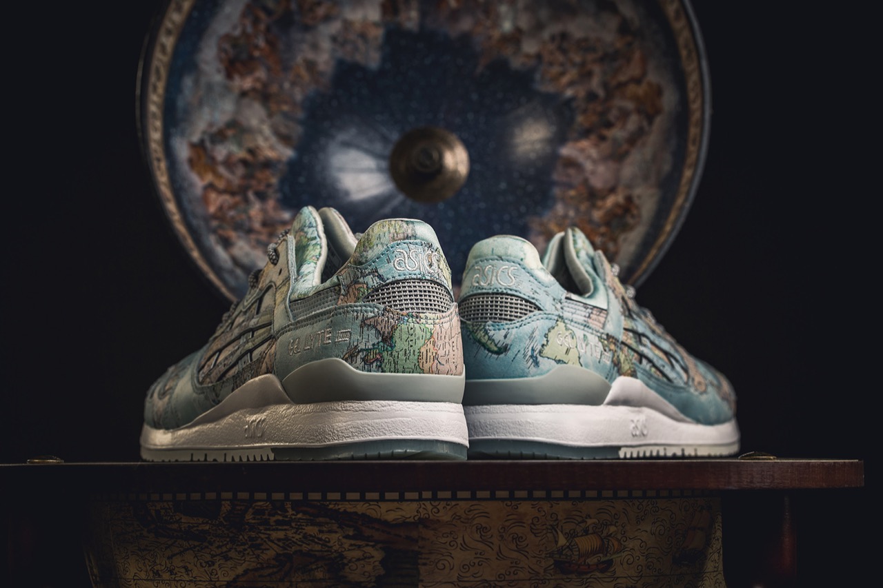 Kurz vor Weihnachten können wir den Release eines besonders kosmopolitischen Schuhs ankündigen. ASICSTIGER und ATMOS sind nicht mehr von einander wegzudenken und kommen im Januar mit einem nächsten Knaller. Der “World Map” GEL-LYTE™ III kommt mit all-over Kartenprint auf dem Upper. Leichtes Blau für die Weltmeere, die Kontinente und Länder kommen etwas bunter daher, der Text schwarz. Dazu kommt ein subtiler Logo-Print von ATMOS auf der Innensohle – absolut stimmiger und authentischer Colorway! Das gesamte Upper ist übrigens aus Leder gefertigt!