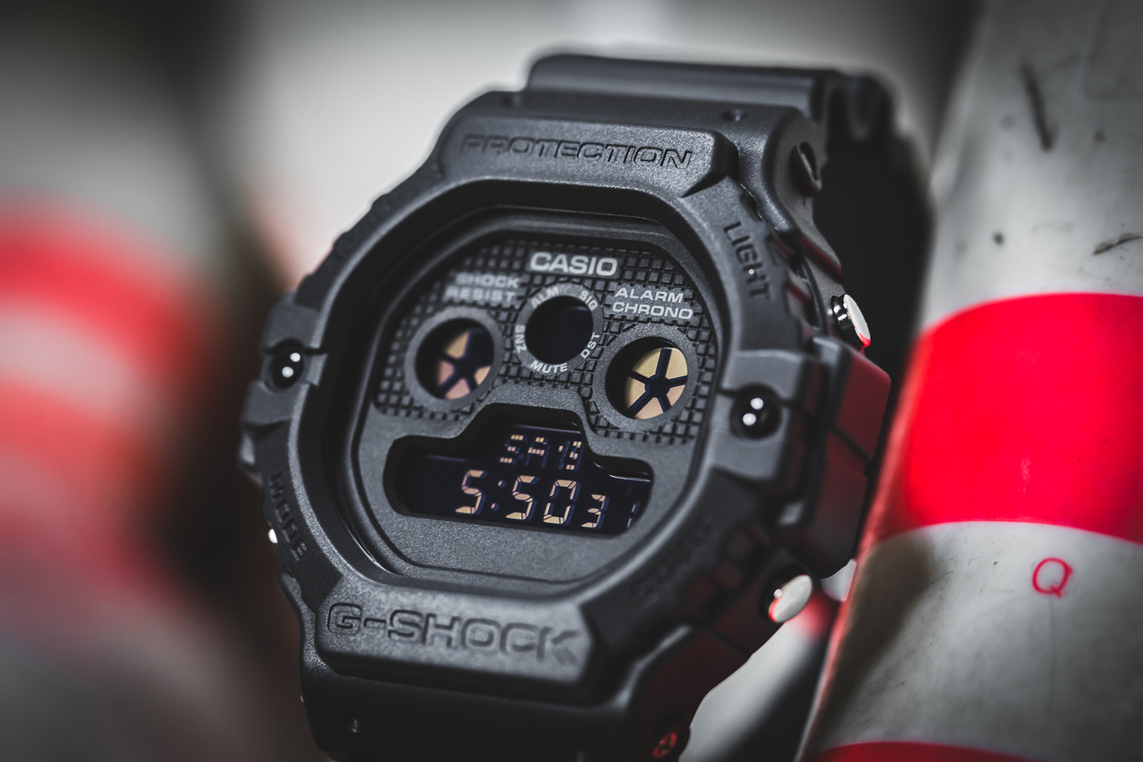 Die DW-5900 wird zum ersten Mal seit 1993 wieder releast, den Beinamen »Three Eyes« hat sie durch die drei hexagonalen Anzeigen auf dem Display. Die Uhr ist ab sofort bei uns im Store zu finden – in einem schlichten, schwarzen Colorway. Zum Release gehören übrigens noch eine G-SHOCK DW-6900BBA-1ER und eine G-SHOCK DW-D5500BB-1ER.