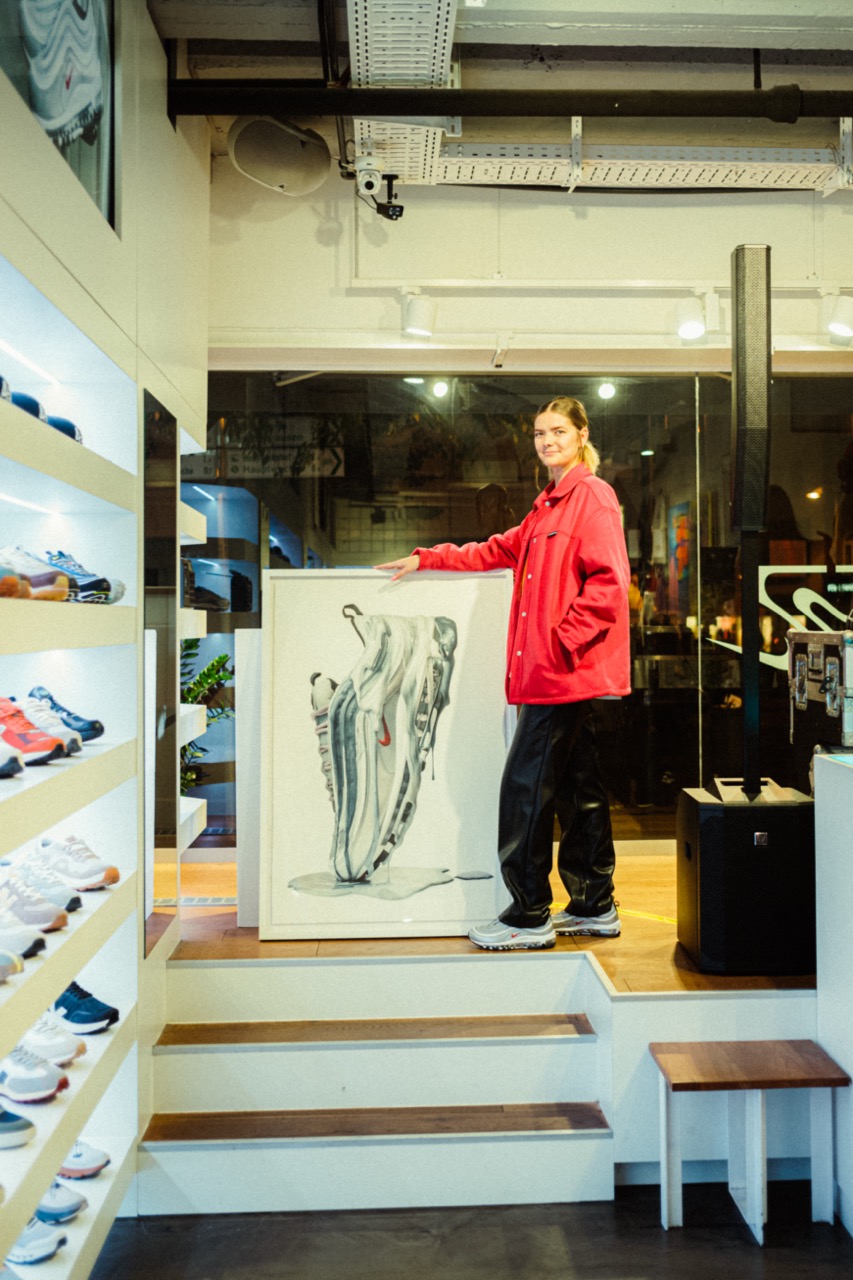 Anlässlich des 25-jährigen Jubiläums der Silhouette haben wir uns mit der Münchner Künstlerin Natascha aka nana.theartist zusammengetan. Wir sind große Fans ihrer Buntstiftzeichnungen von Sneakern und ihres einzigartigen Stils. Sie hat den »Silver Bullet« mit seinem gewellten Upper in silberne Flüssigkeit gehüllt und ein futuristisches Artwork rund um die Geschichte geschaffen. Im Store wurde das Kunstwerk ausgestellt und verlost.