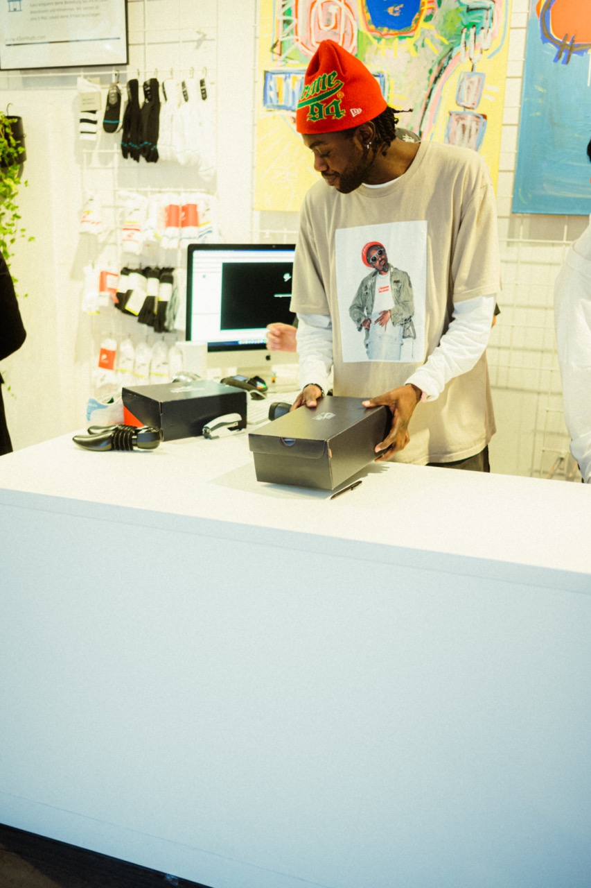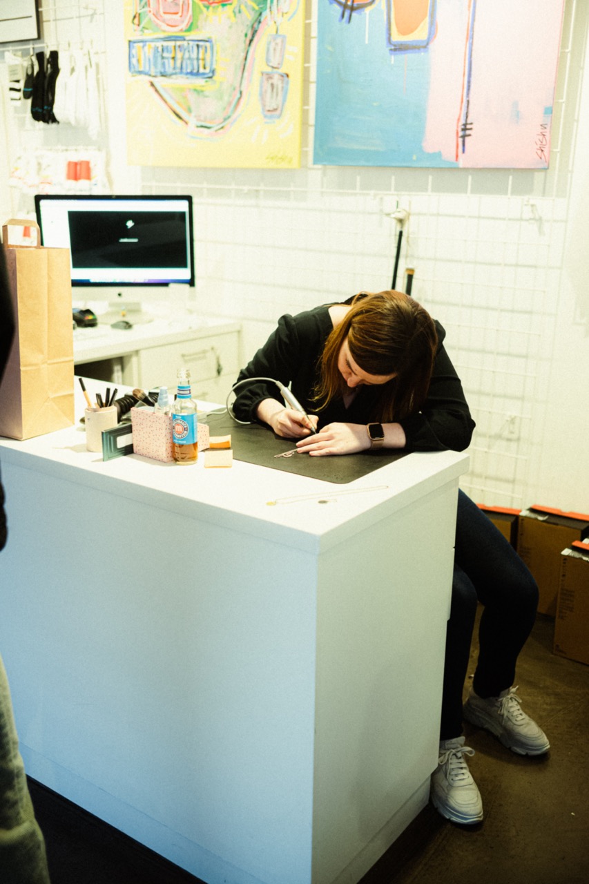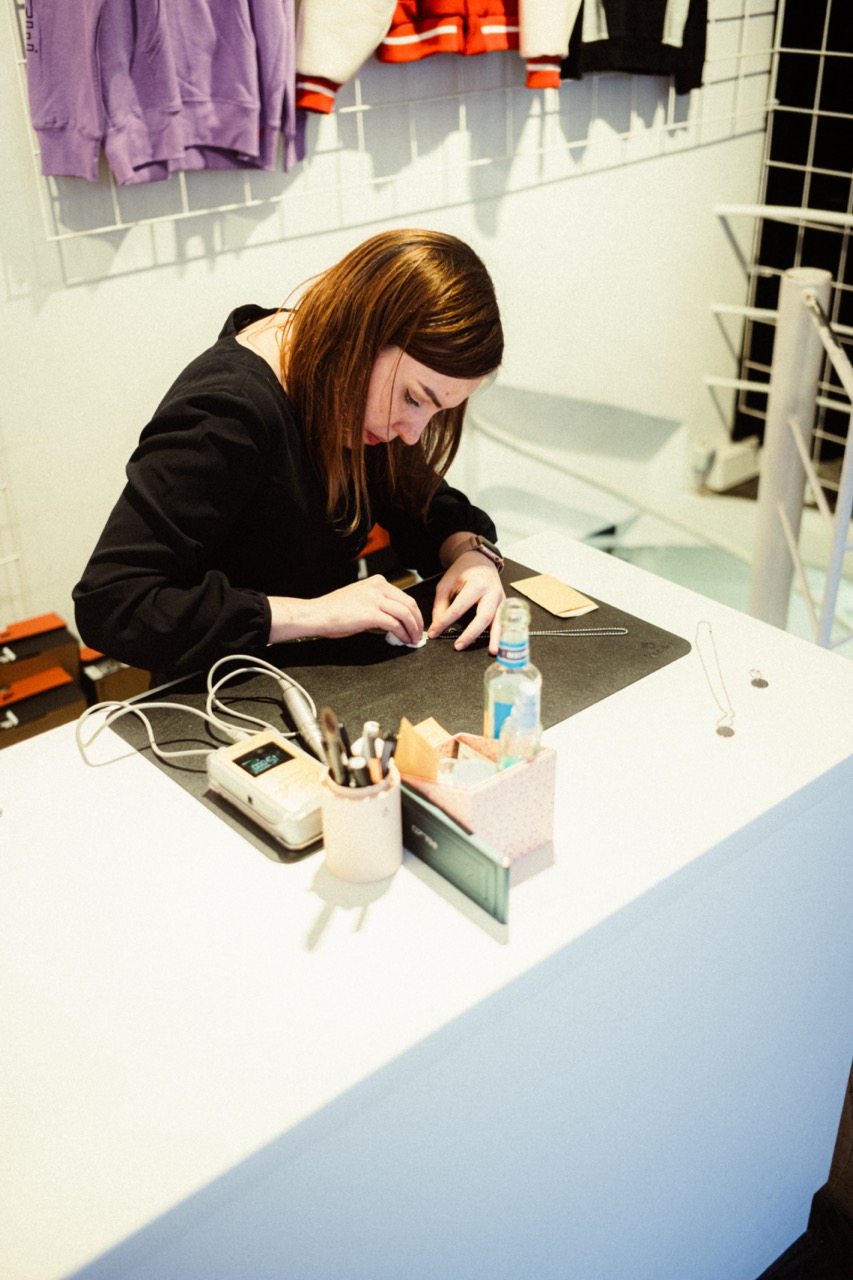Unser Release-Event startete um 18 Uhr im Store und wurde mit guter Musik von leyagrams begleitet. Neben der DJ war auch lilinda, eine Graveurin vor Ort, um die »AM97« – Badges, die es zu jedem Kauf dazu gab, mit Initialen zu gravieren.