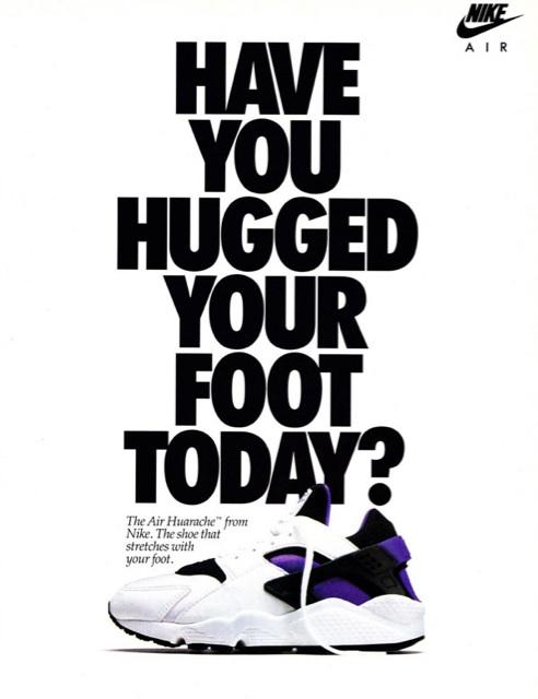 Das Bild von Vater und Sohn ist zu einer Ikone und einem Symbol für den olympischen Geist geworden. Ebenso Jim Redmonds Shirt: Zu sehen ist der Air Huarache OG White/Turquoise inklusive dem damaligen Slogan „Have you hugged your foot today?“ Einfach episch!