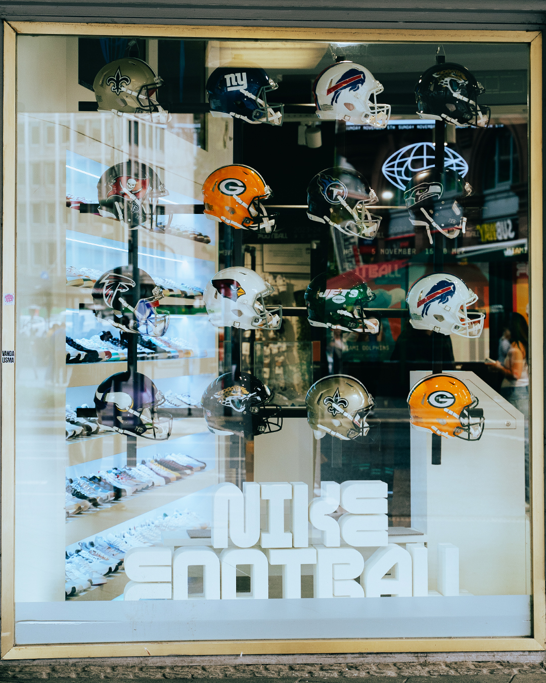 We have all the good stuff! Official team jerseys, shirts, hoodies, fan scarfs and everything else you need to support your favorite team. The usually clean and bright sneaker store has been completely redecorated for the Frankfurt Games and is hardly recognizable.