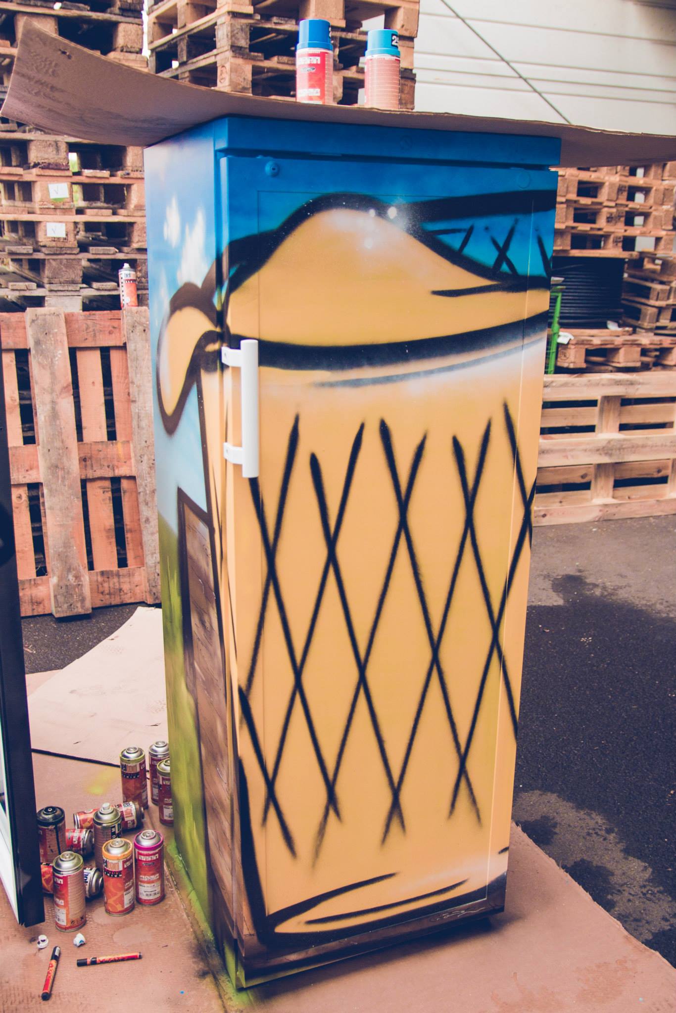 Seit gestern Abend ist es eigentlich keine große Überraschung mehr, weil ich Bilder geposted habe. Also: Der Sommer beschert Fulda auch heute wieder Temperaturen jenseits der 30 Grad Celsius. Für unsere erste richtig große Glücksaktion haben uns die wunderbaren Menschen von NullSechsSechsEins drei Kühlschränke umgestaltet. Unsere „Glücksschränke“ erkennt man jetzt nicht mehr sofort als Kühlschränke.