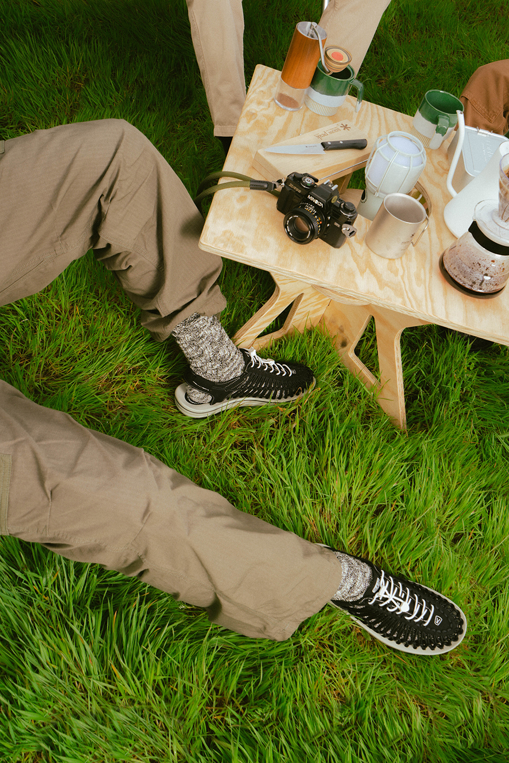 Mit der UNEEK Silhouette brachte Keen 2014 einen funktionalen und zugleich modischen Outdoor-Schuh auf den Markt. Die Silhouette ist undefinierbar. Weder Sandale noch Sneaker. Er ist ein Hybrid, der sich durch patentierte, verflochtene Kordeln, eine anpassungsfähige Form und ein geruchshemmendes Fußbett optisch und technisch deutlich von der Masse abhebt.