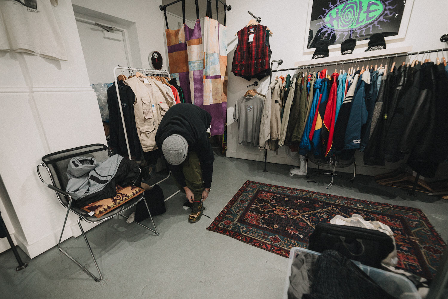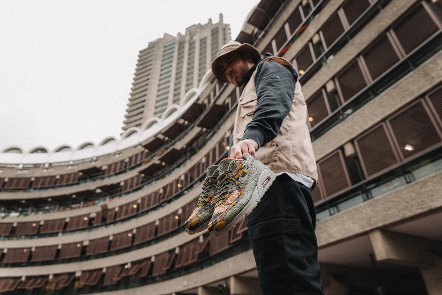 Simon: Das Outfit haben wir bewusst so gewählt, weil es perfekt zum aktuellen London Style passt… und diese Kodak Olympia Weste war einfach mega! Dazu noch die schwarze Cargo Pants und ‘nen beigen Bucket und alles war perfekt.