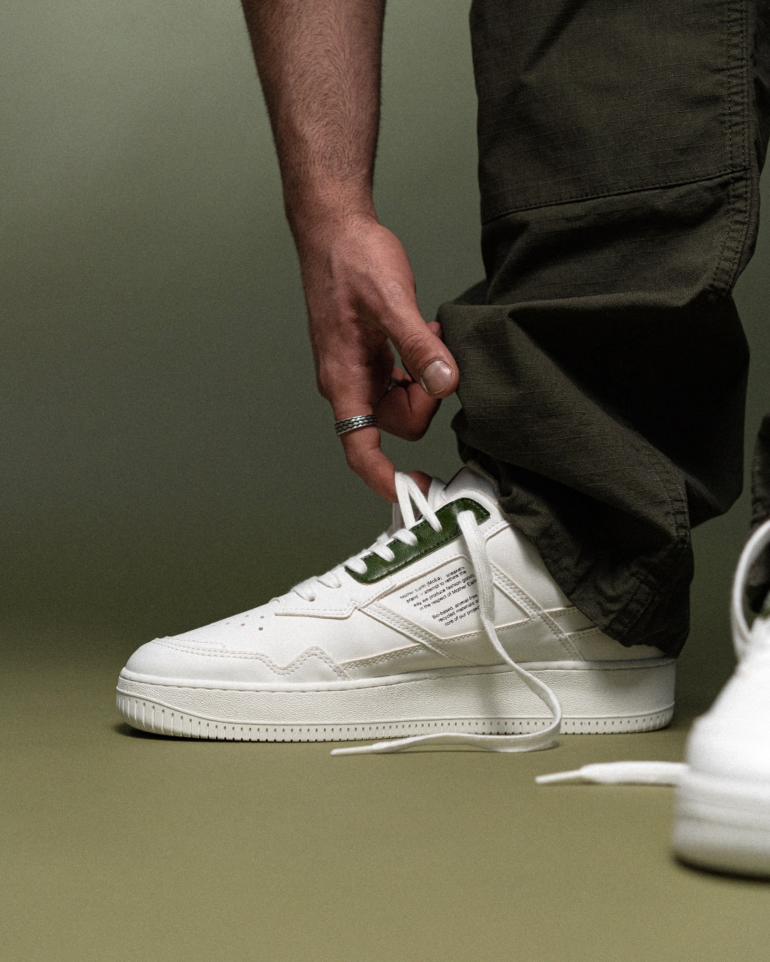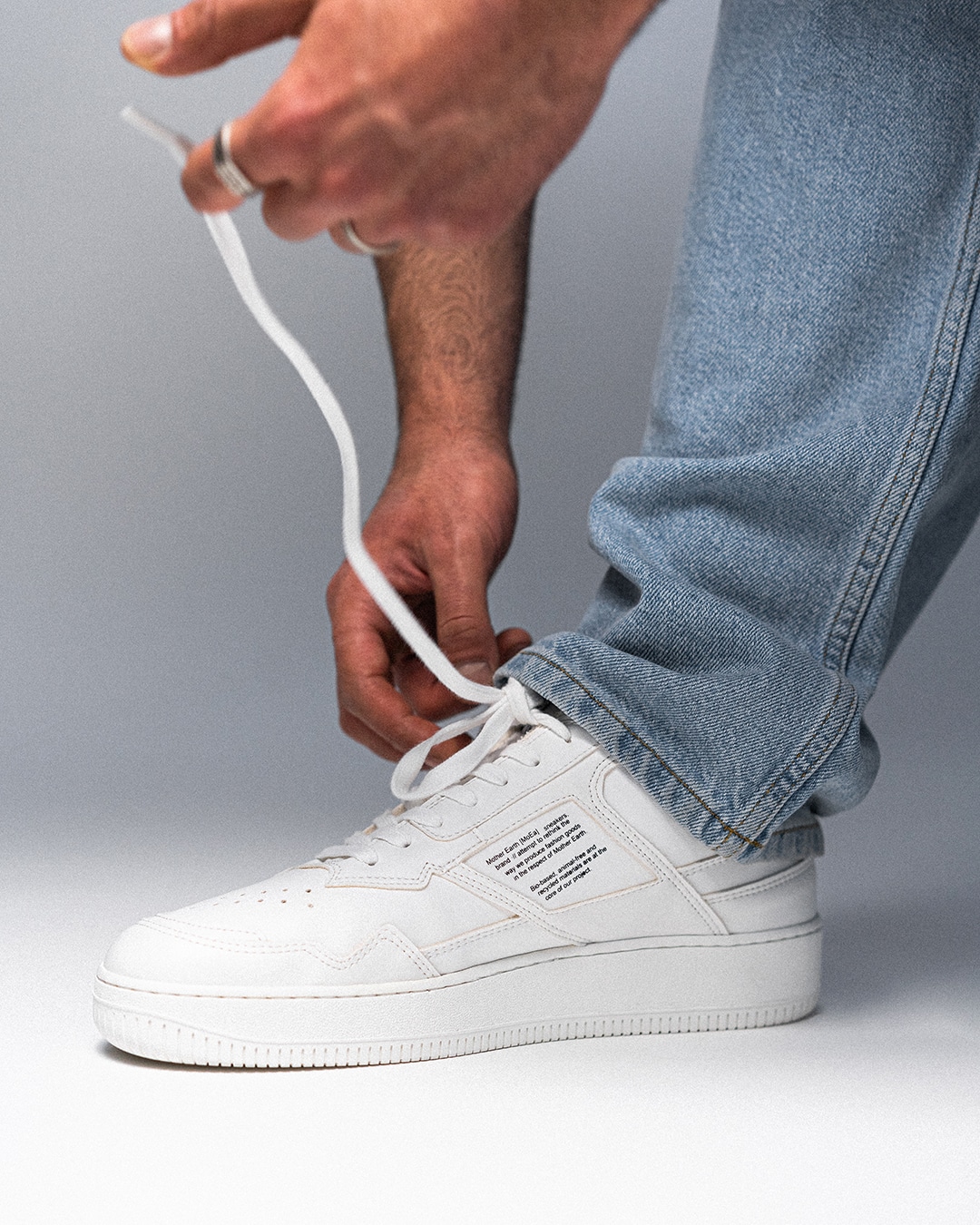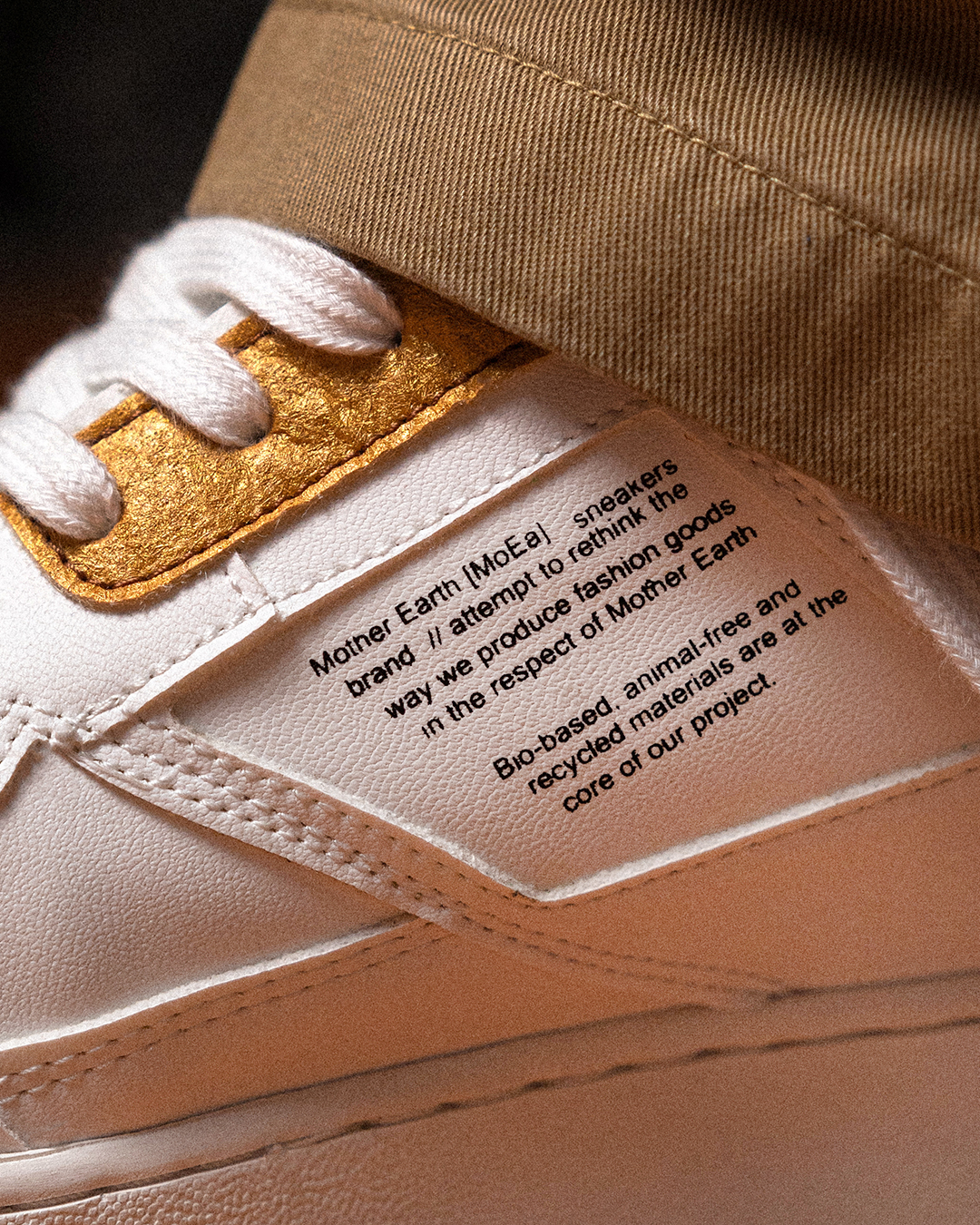In der Regel bestehen die Sneaker von Mother Earth zu 54 % aus recycelten Fruchtresten. Bei den restlichen Bestandteilen kommen aber weiterhin nur nachhaltige Elemente zum Einsatz, vom veganen Leder bis hin zum wasserbasierten Kleber.