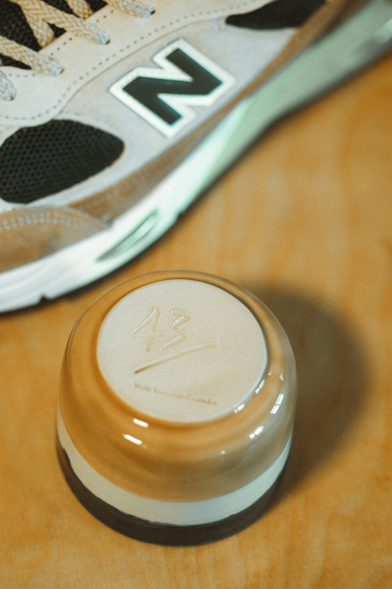 Since we love the colorway of the M991SBN so much, we got together with our local coffee roastery Reinholz and created our very own M991SBN roasting that will come as a gift with every shoe. To give you the full coffee experience, Viola Beuscher Ceramics designed a handcrafted, limited edition coffee cup for every customer as well.