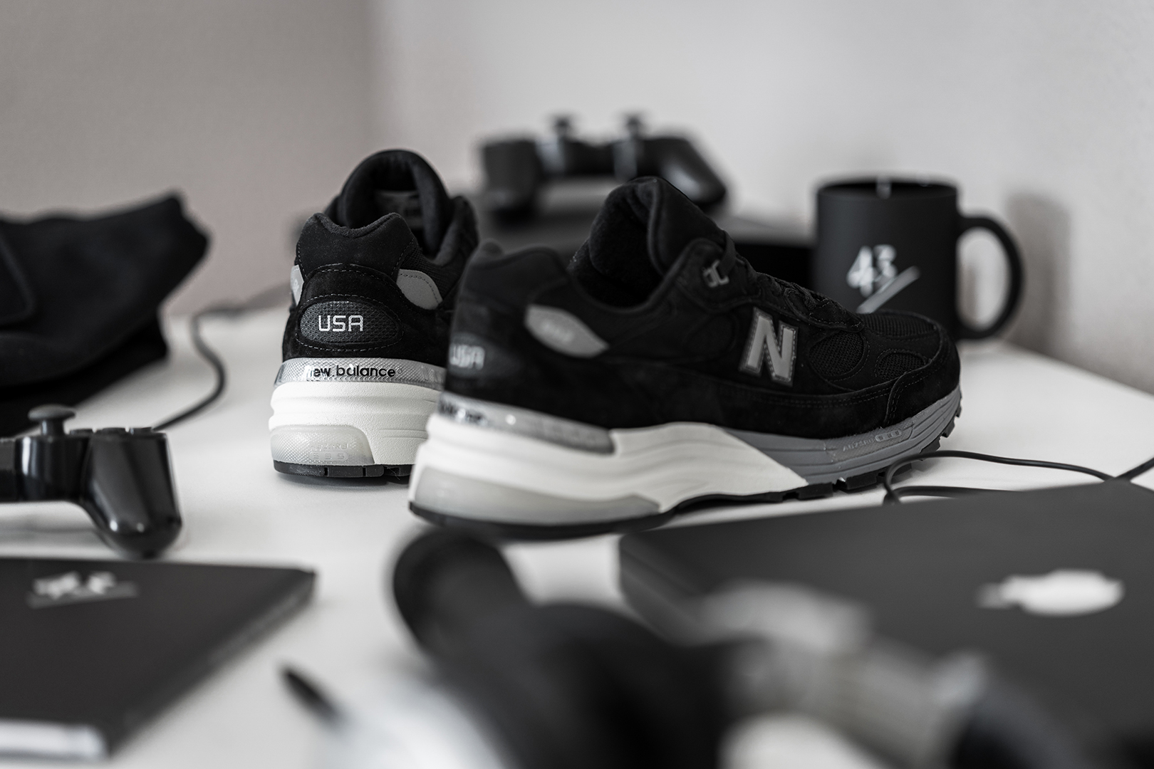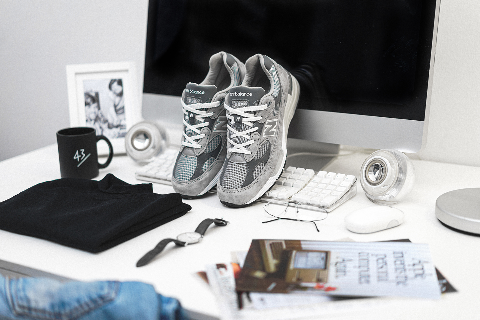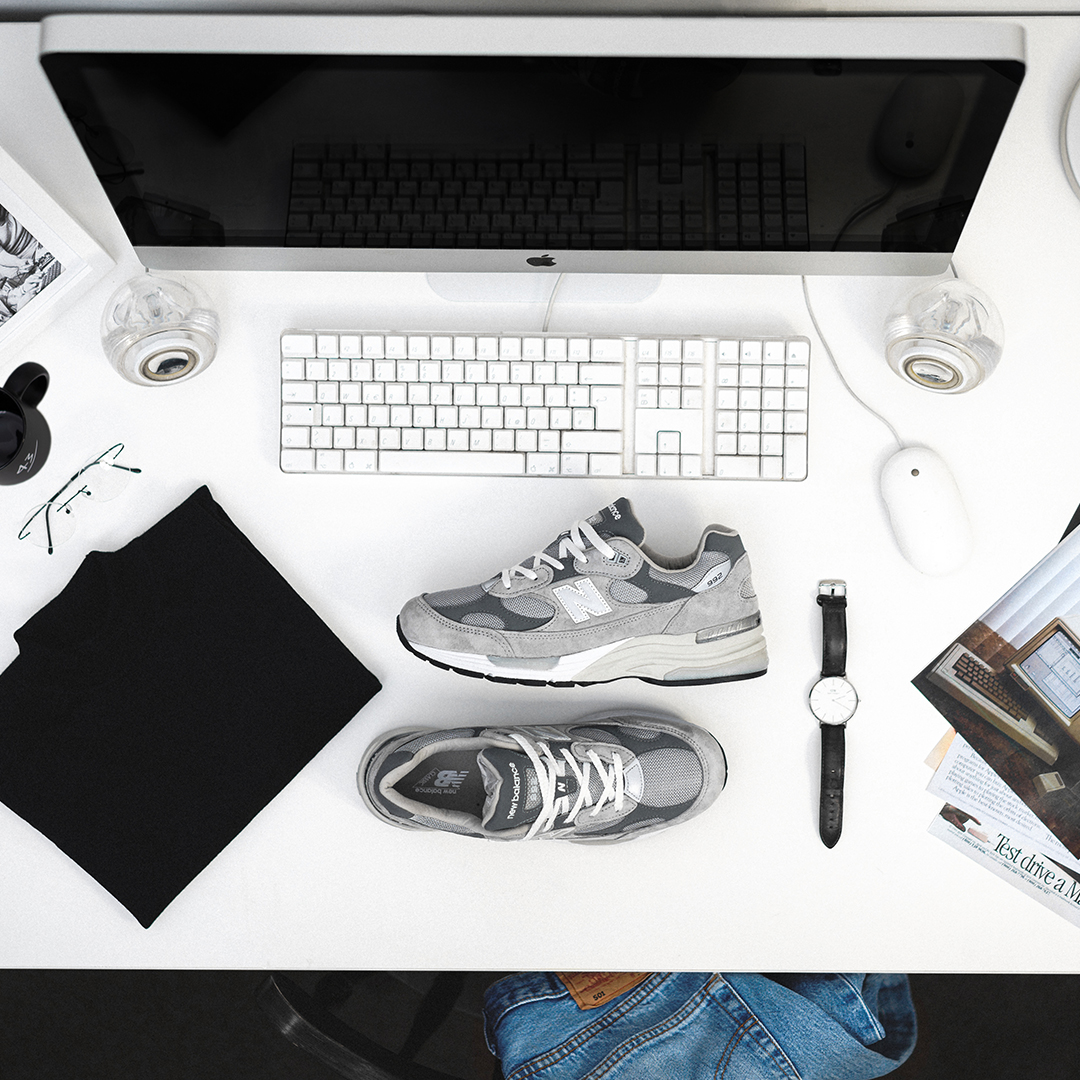 Ihr fragt Euch bestimmt, was das alles mit New Balance und dem 992 zu tun hat. Es ist kein Geheimnis, dass der gröĂte VisionĂ€r unserer Zeit auch privat groĂen Wert auf die Kombination zwischen FunktionalitĂ€t und Form legte. Dabei war seine Schuhwahl immer die gleiche: “Made in USA” New Balance 990er in Grau. Die Traditionsmarke aus Boston zollt nun dem Mann in Jeans und Rollkragenpulli Tribut und prĂ€sentiert ein neues Pack, das von uns liebevolle “One More Thing” Pack genannt wurde!