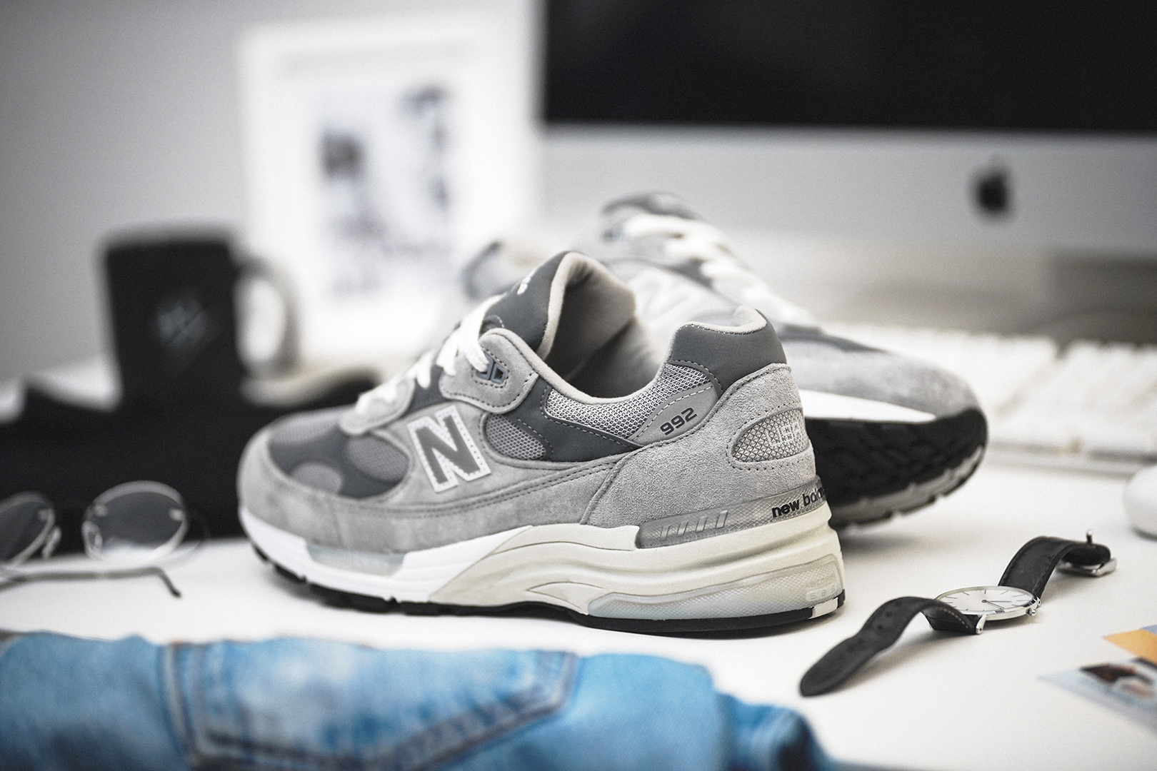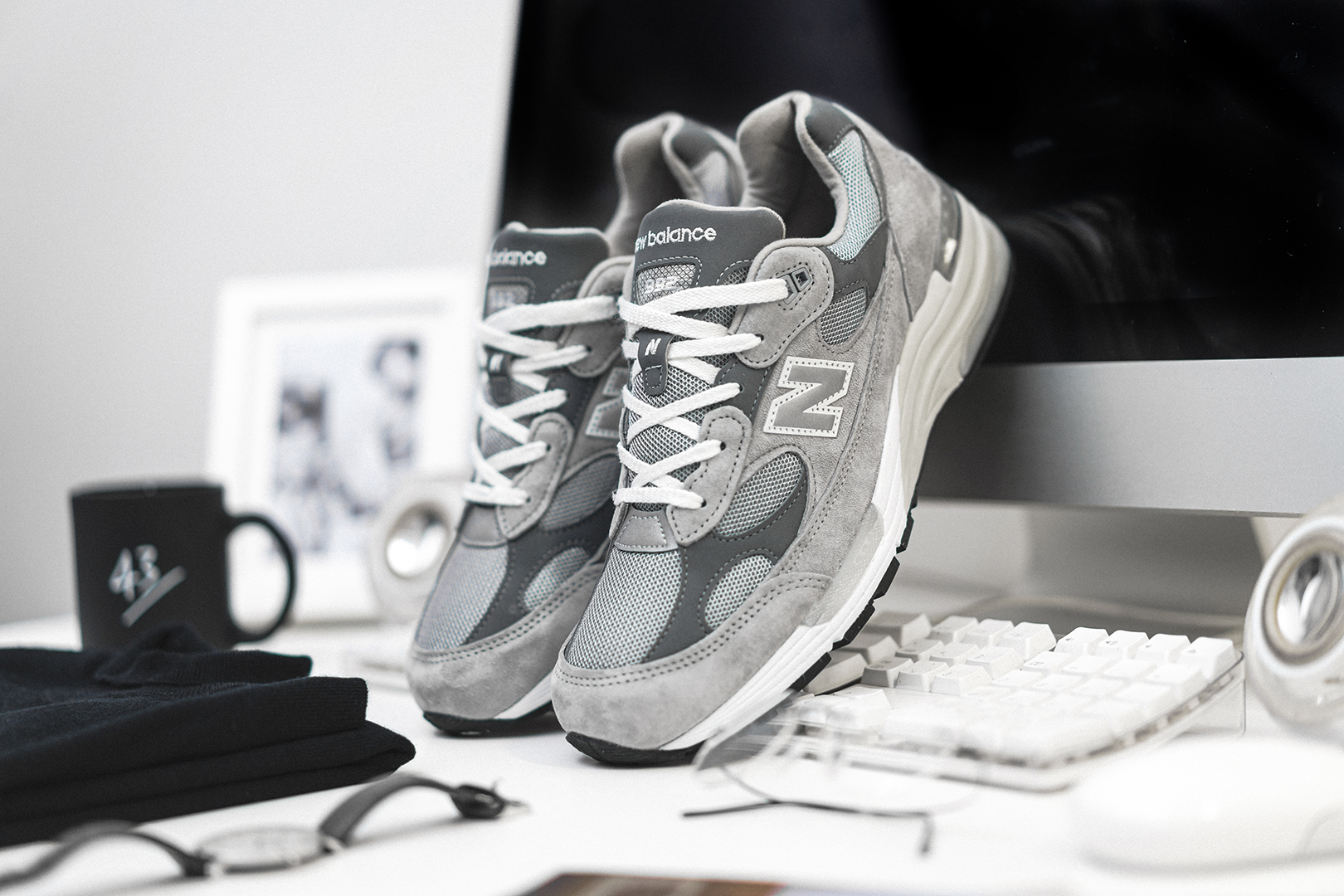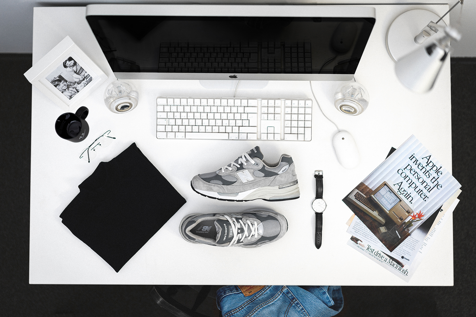 Ihr fragt Euch bestimmt, was das alles mit New Balance und dem 992 zu tun hat. Es ist kein Geheimnis, dass der gröĂte VisionĂ€r unserer Zeit auch privat groĂen Wert auf die Kombination zwischen FunktionalitĂ€t und Form legte. Dabei war seine Schuhwahl immer die gleiche: “Made in USA” New Balance 990er in Grau. Die Traditionsmarke aus Boston zollt nun dem Mann in Jeans und Rollkragenpulli Tribut und prĂ€sentiert ein neues Pack, das von uns liebevolle “One More Thing” Pack genannt wurde!