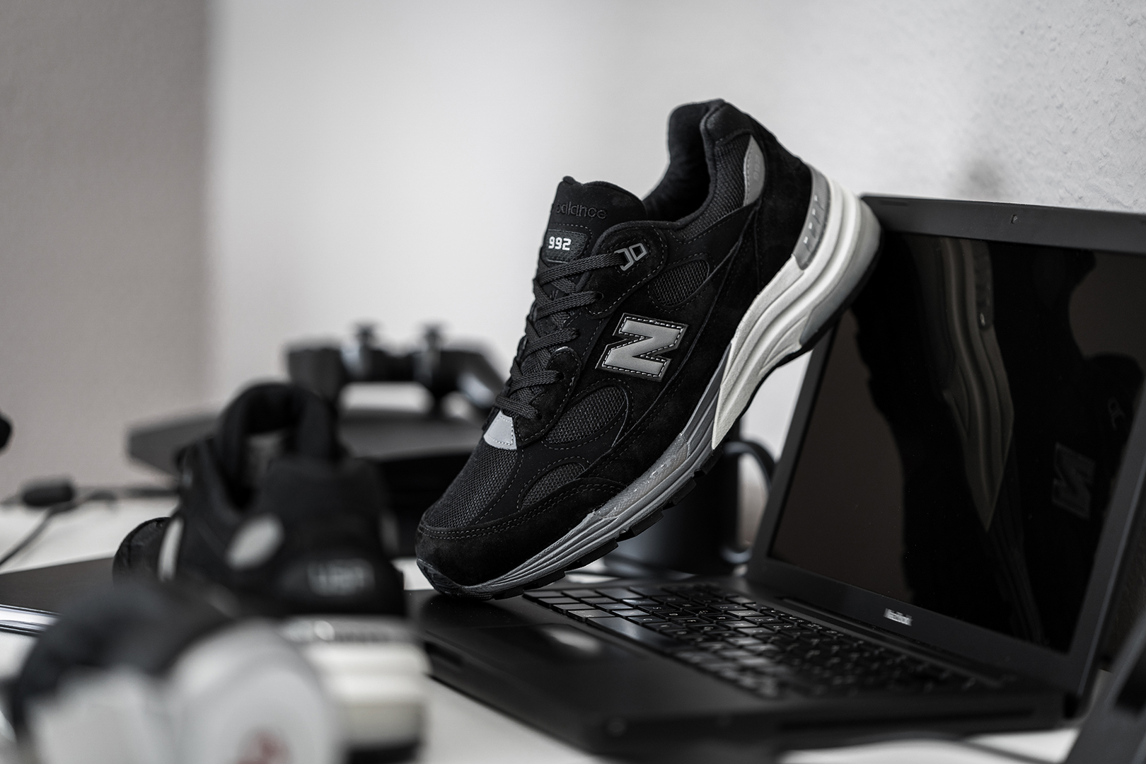 Ihr fragt Euch bestimmt, was das alles mit New Balance und dem 992 zu tun hat. Es ist kein Geheimnis, dass der gröĂte VisionĂ€r unserer Zeit auch privat groĂen Wert auf die Kombination zwischen FunktionalitĂ€t und Form legte. Dabei war seine Schuhwahl immer die gleiche: “Made in USA” New Balance 990er in Grau. Die Traditionsmarke aus Boston zollt nun dem Mann in Jeans und Rollkragenpulli Tribut und prĂ€sentiert ein neues Pack, das von uns liebevolle “One More Thing” Pack genannt wurde!