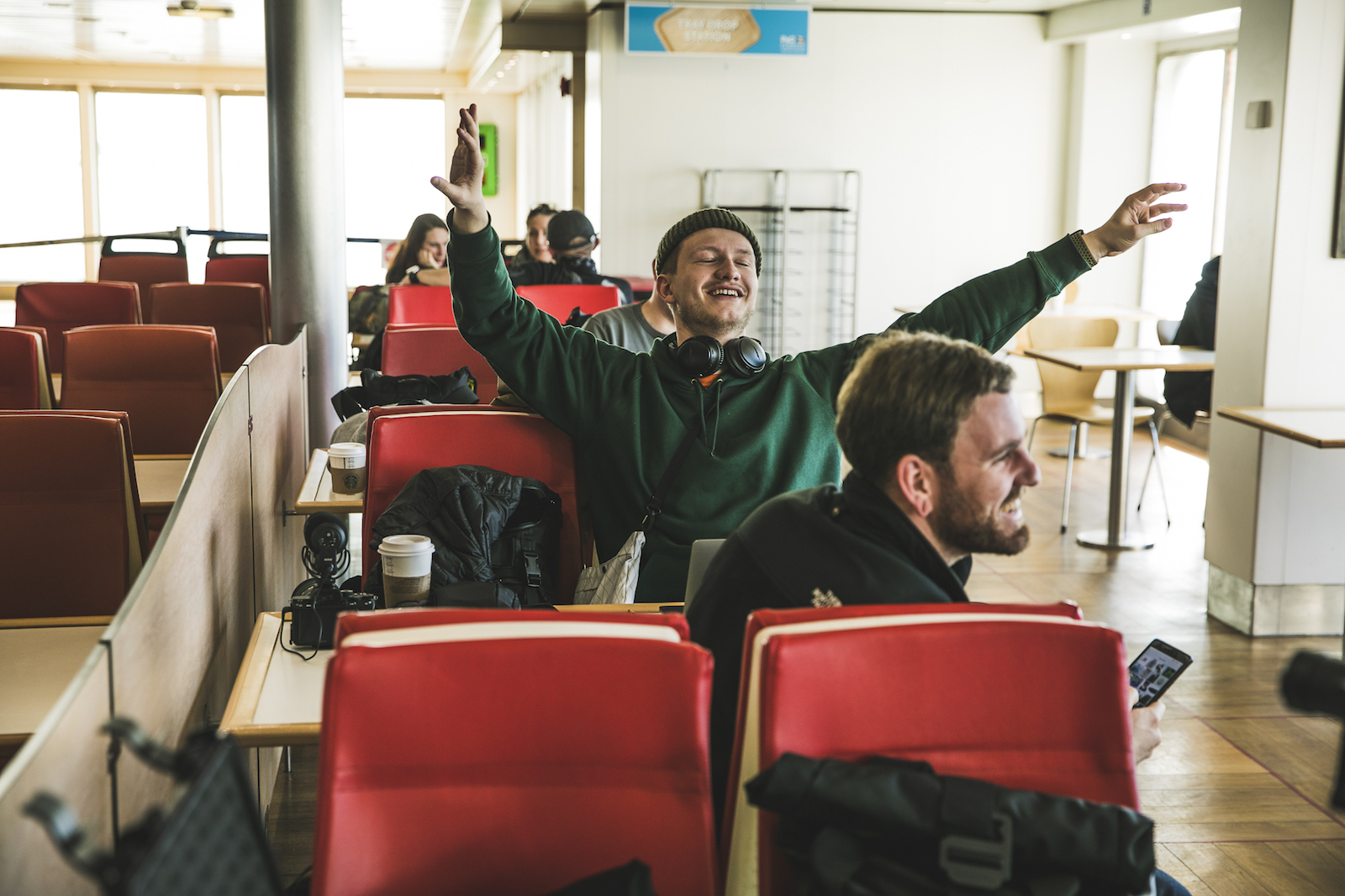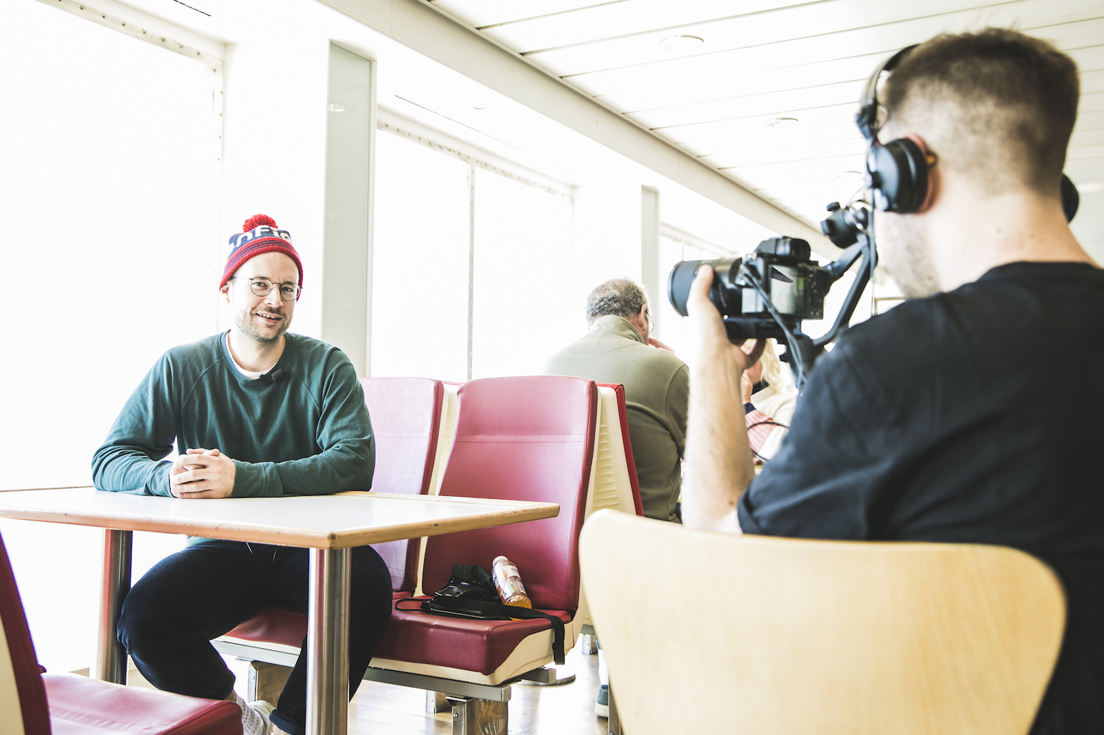 Auf der Fähre hatten wir den New Balance 1500CHF, 2012 in Kollaboration mit Hanon Shop entstanden, dabei. Der Schuh ist farblich vom Meer inspiriert, damals wurden sogar die Moodshots im Hafenumfeld gemacht. Hat also perfekt gepasst, die Schuhe auf dem blauen Deck der Fähre in Szene zu setzen!