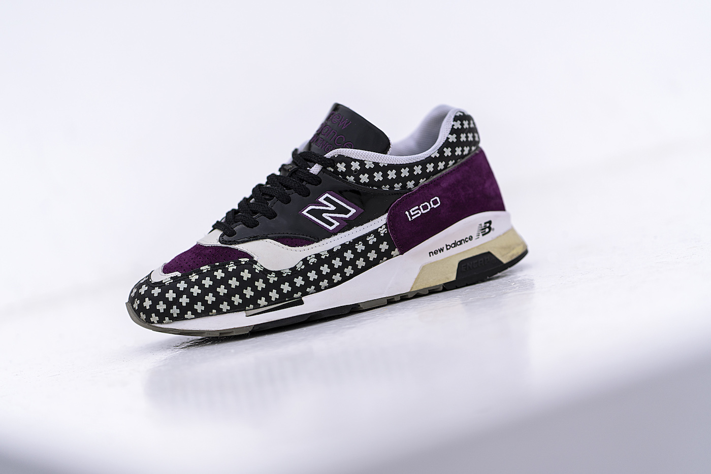 Passend dazu haben wir heute auf der Heimfahrt nochmal zwei Schuhe aus Stefans Sammlung geshootet. Der NB 1500PIC ist gerade erst 13 Jahre »alt geworden« und sticht durch den aussergewöhnlichen Materialmix mit Patent-Lackleder auf der Seite und den weißen Kreuzen auf der Toebox definitiv heraus. Lediglich 96 Paare existieren vom PIC!