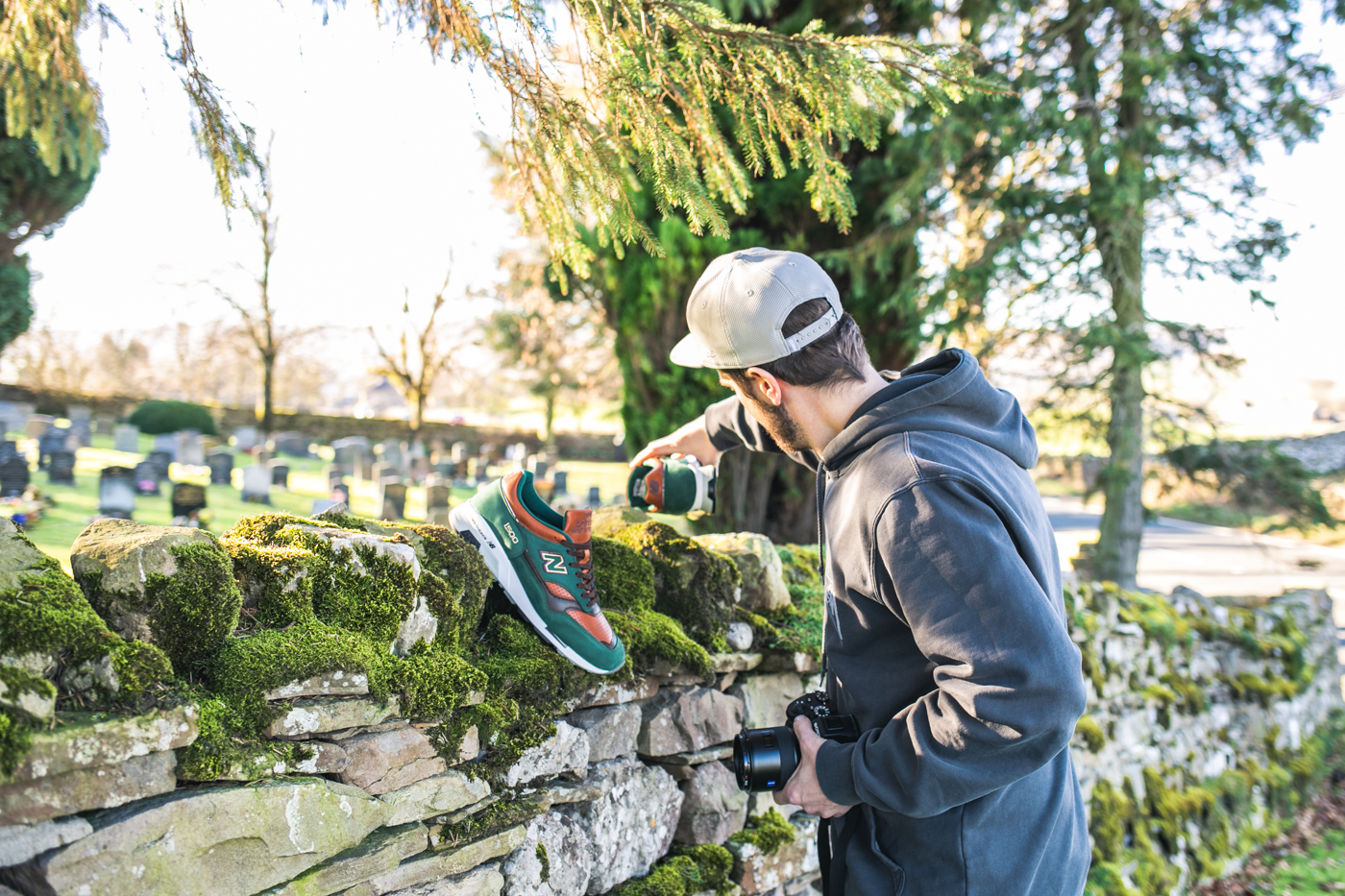 Dazu haben wir den NB 1500 x Foot Patrol ausgepackt. Englische Kollabos passen natürlich perfekt auf unseren Tripp. Der Footpatrol Colorway von 2015 verfügt über ein cleanes, schwarzes Upper mit prunkvollen, goldenen Details, die auch perfekt in die Umgebung gepasst haben! Inspiriert war der Schuh übrigens von der Encyclopedia Britannica, die 2012 zum letzten Mal herausgebracht wurde.