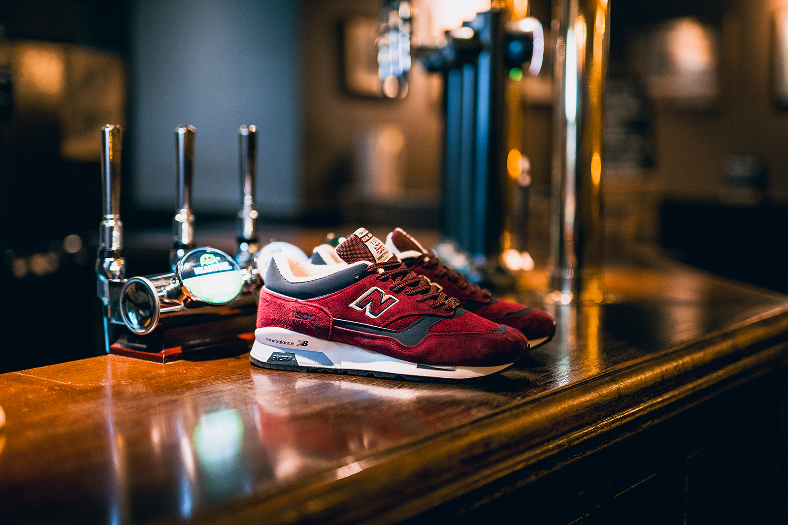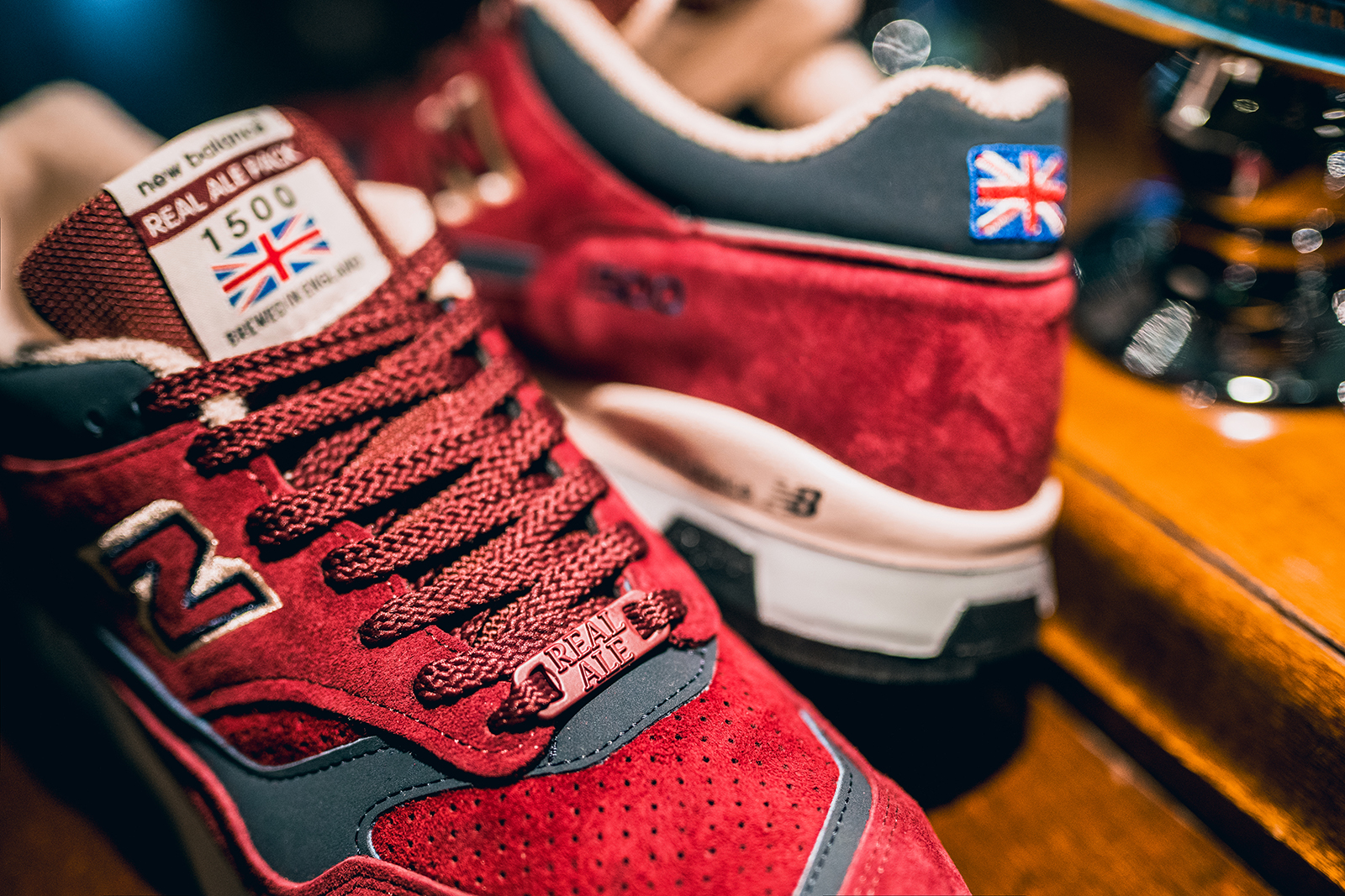 Zum Schluss gab es dann noch ein sehr »regionales« Paar. Der 1500er aus dem Real Ale Pack von 2015 wurde stilecht im lokalen Pub im Lake District fotografiert. Red Ale ist eines der charakteristischen Ales in der Region, so dass die Inspiration nicht von ungefähr kommt. Der Colorway ist unglaublich ausdrucksstark und kräftig. Damals kam jedes Paar mit einem gebrannten Ale Tab Etikett!