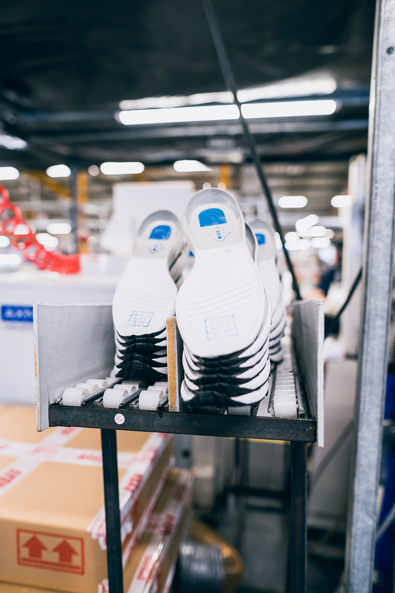 New Balance wurde 1906 in Boston, Massachusetts vom englischen Einwanderer William J. Riley gegründet (da kommt auch die Verbindung zu UK her) gegründet. Ursprünglich stellte die Brand orthopädische Schuheinlagen her, bevor in den 1930ern die ersten revolutionäre Laufschuhe vom Band gingen. 1982 kaufte der damalige Besitzer von New Balance in Workington eine Fabrik, wo er zum ersten Mal NB-Schuhe in England herstellen ließ. Zu der Zeit schlossen nach einander viele Schuhmanufakturen in der Region Cumbria und Besitzer Jim Davis erkannte, dass er in der Gegend sowohl die Skills, als auch die Mitarbeiter für eine eigene Schuhfabrik finden würde. In Irland wurde zu dem Zeitpunkt schon einige Zeit produziert. Zu Beginn arbeiteten knapp 40 Mitarbeiter in der Fabrik. 1991 wurde das heutige Gelände in Flimby, nur wenige Kilometer südlich von der ursprünglichen Fabrik, übernommen. Seitdem wächst die Produktion und auch die Zahl der Angestellten stetig, ohne aber künstlich die Mengen zu vergrößern. Aktuell ist die Einführung von Robotern, die bei der Herstellung helfen sollen, eine Challenge, die bewältigt wird. Mehr als 25.000 Paar Schuhe können so pro Woche hergestellt werden.Viele der AKTUELL 285 Mitarbeiter der Fabrik arbeiten seit mehr als 15 Jahren dort und wohnen im Umkreis von weniger als 10 Kilometer. It’s a local business!