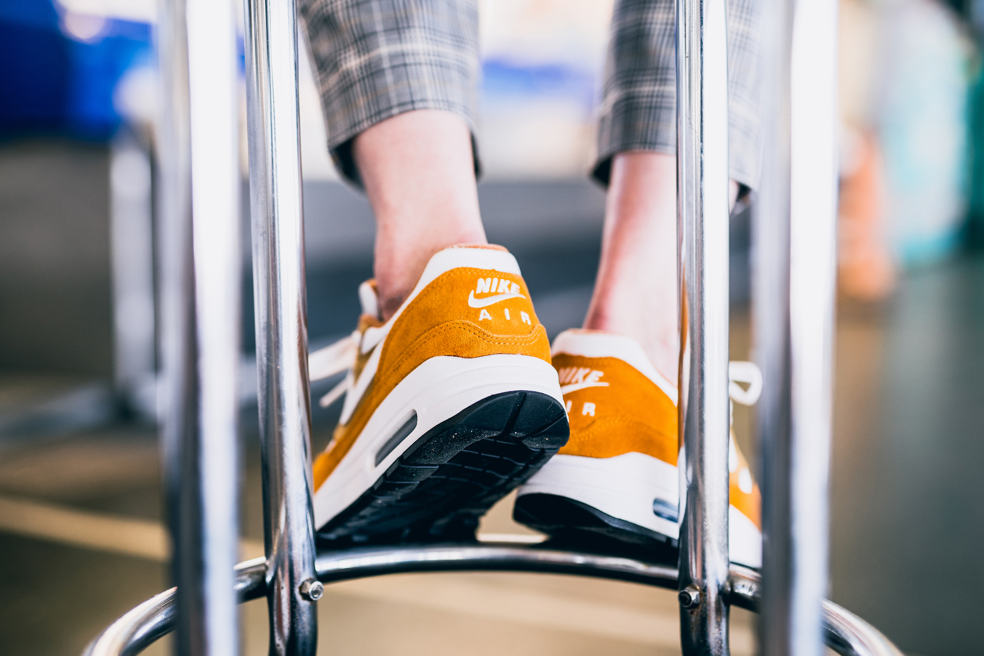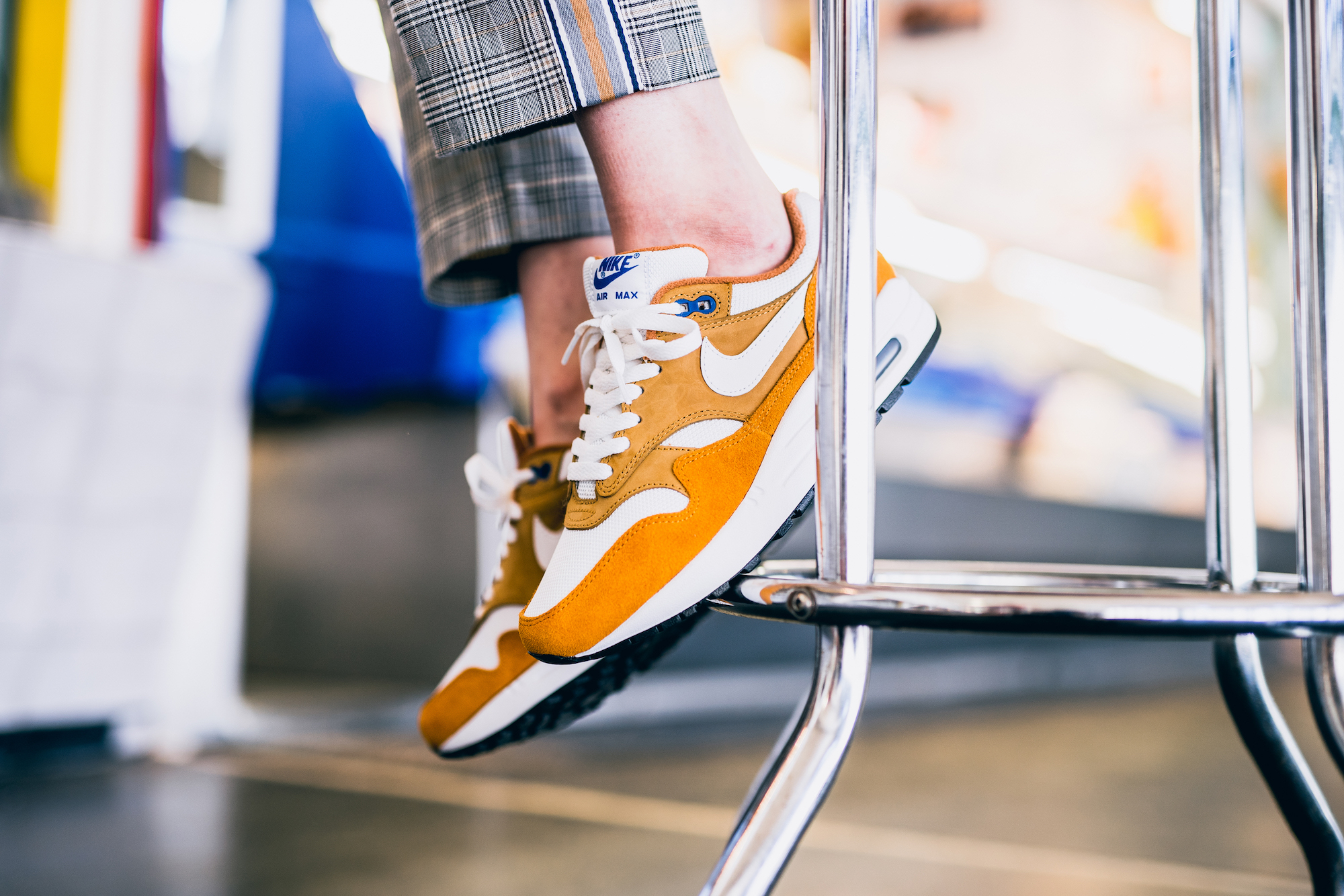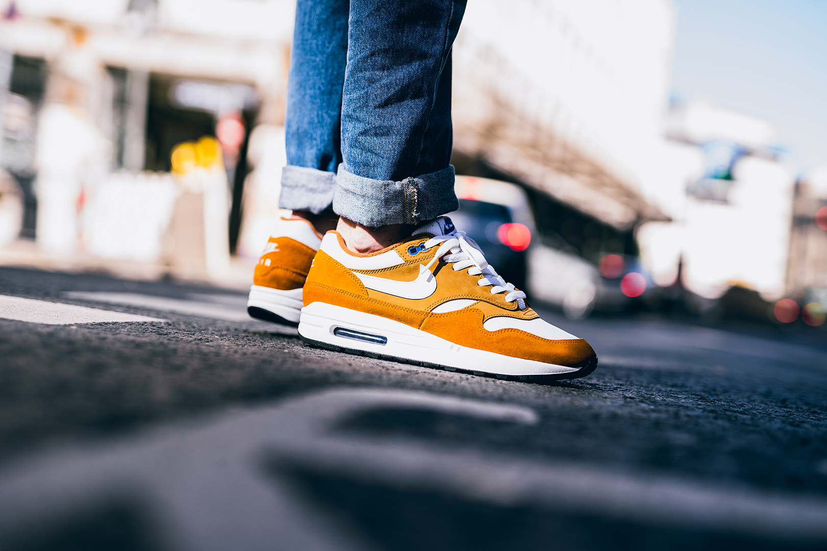 Der Nike Air Max 1 Premium Retro »Curry« OG ist ab dem 10. Mai 2018 um 9 Uhr morgens hier bei uns im Onlineshop in den Größen EU 38,5 – 47,5 für 150€ erhältlich: