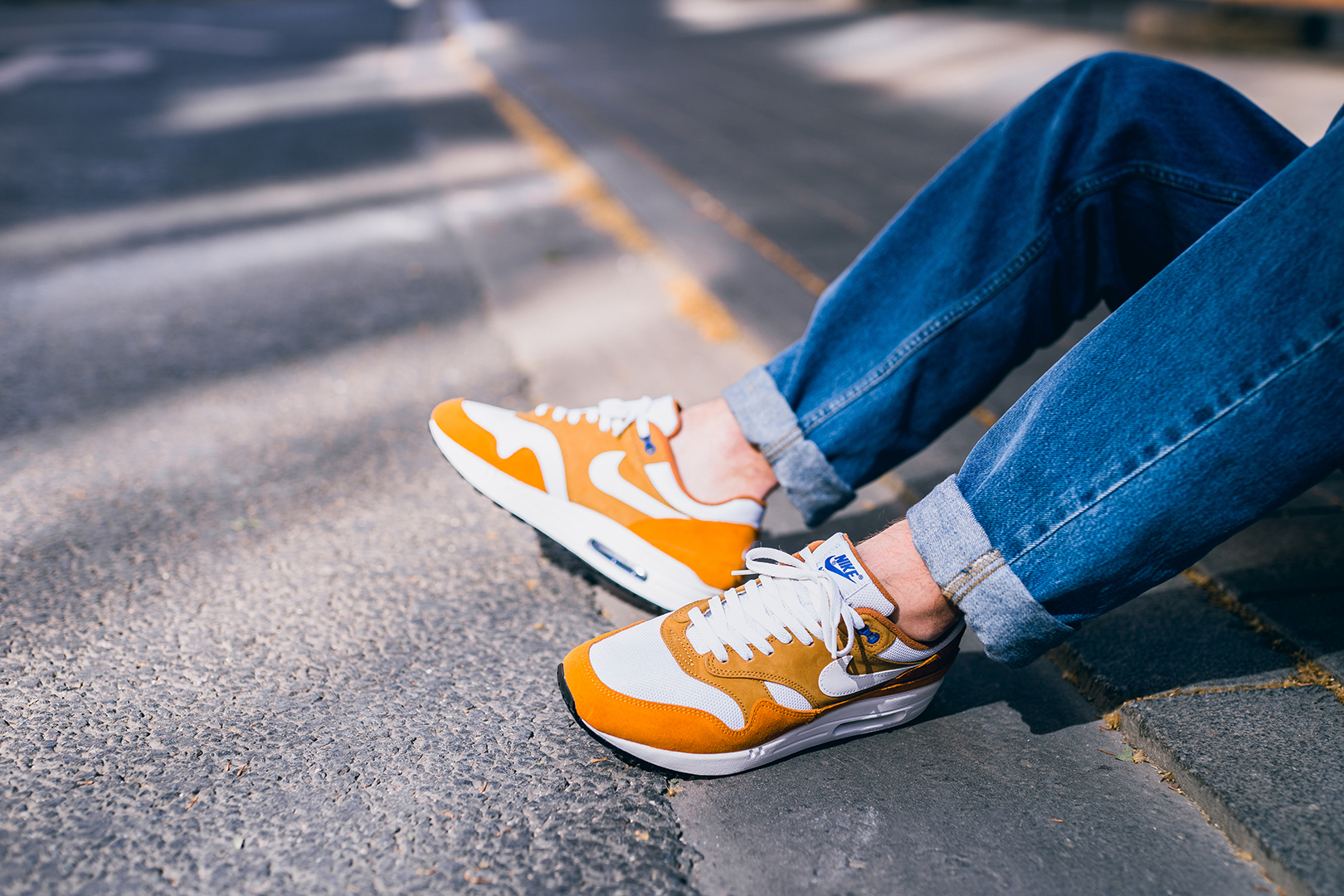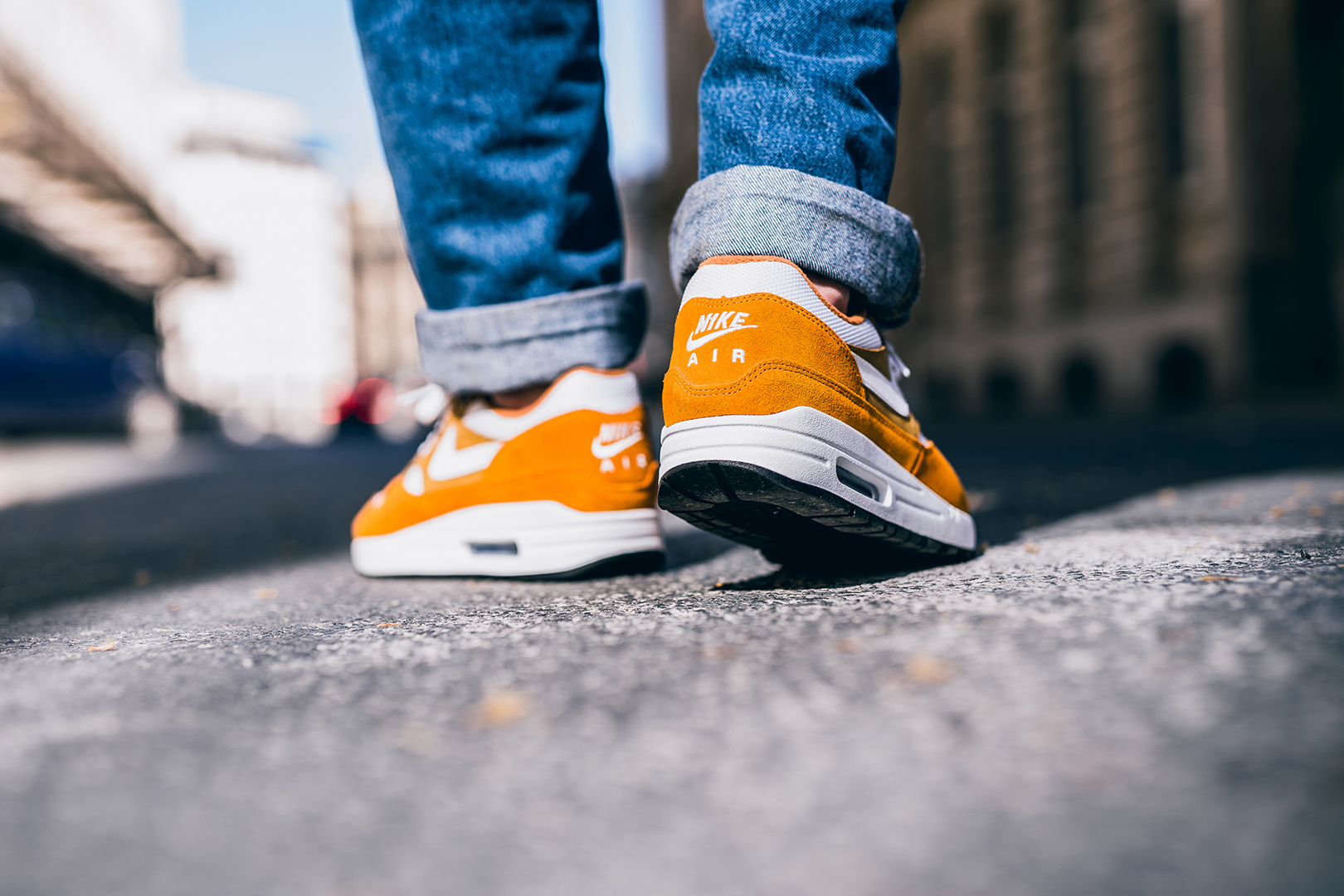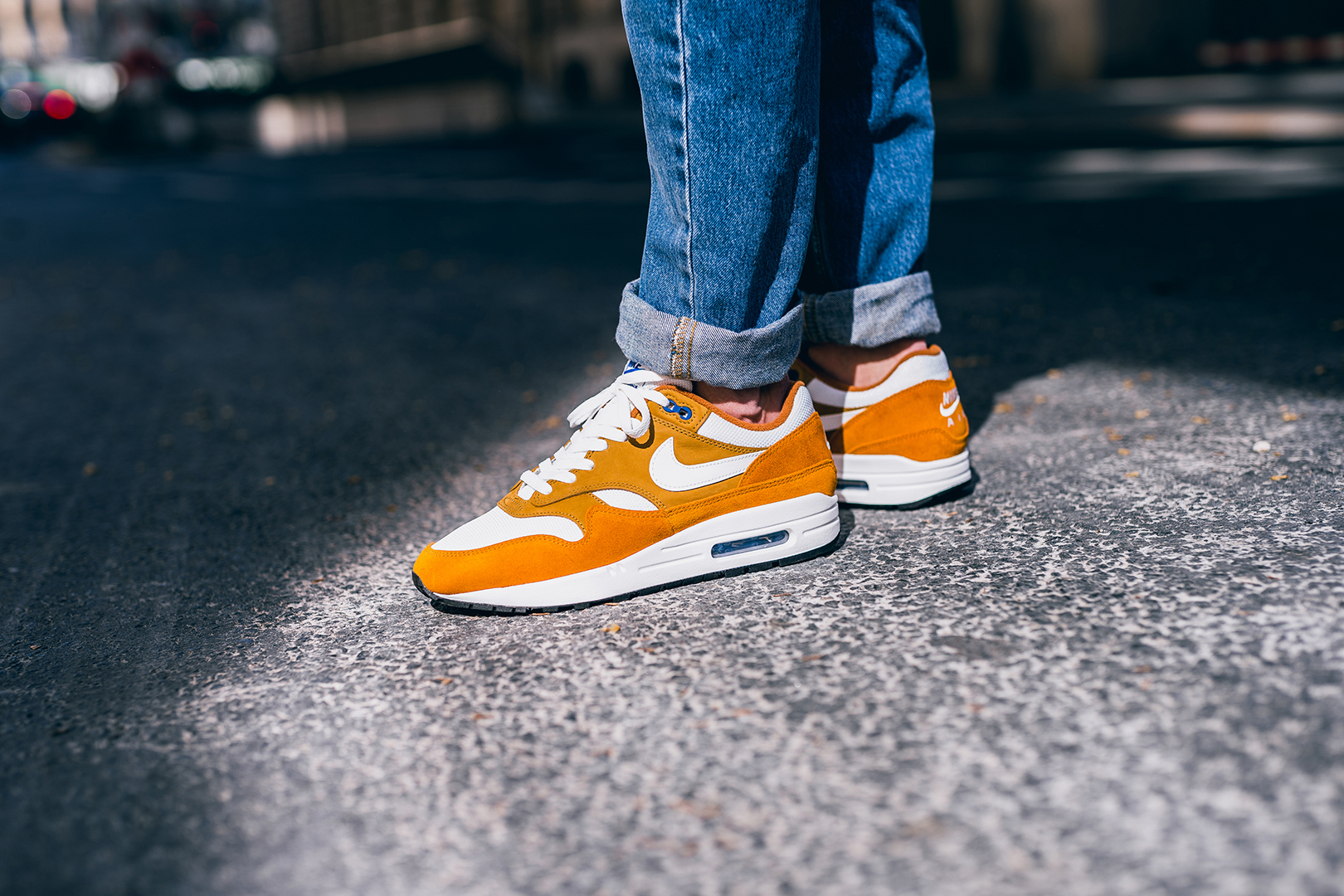 Der Nike Air Max 1 Premium Retro »Curry« OG ist ab dem 10. Mai 2018 um 9 Uhr morgens hier bei uns im Onlineshop in den Größen EU 38,5 – 47,5 für 150€ erhältlich: